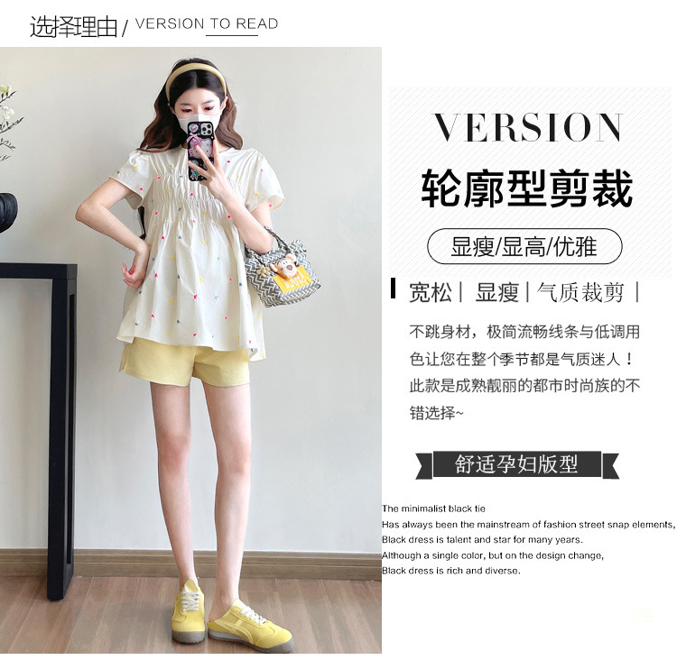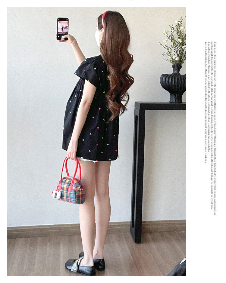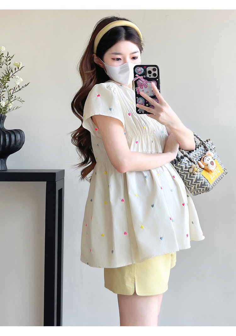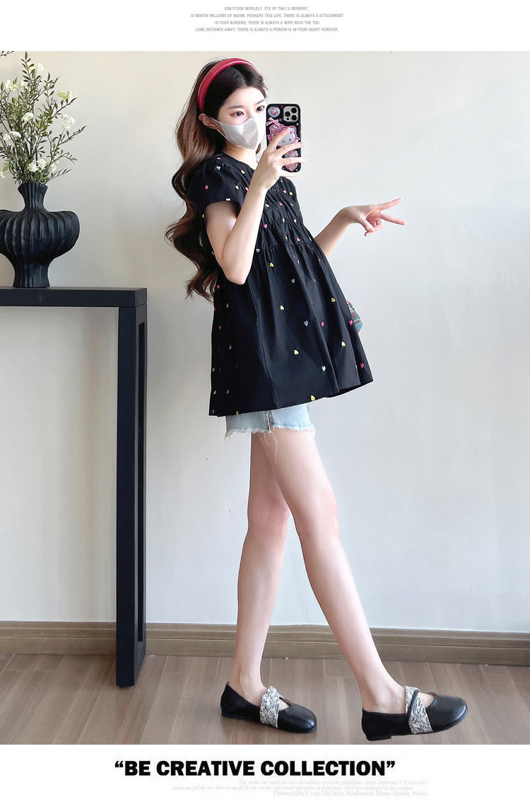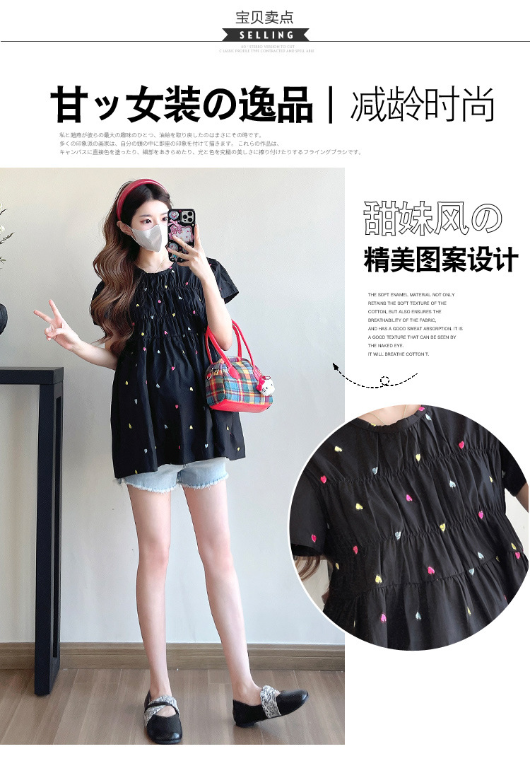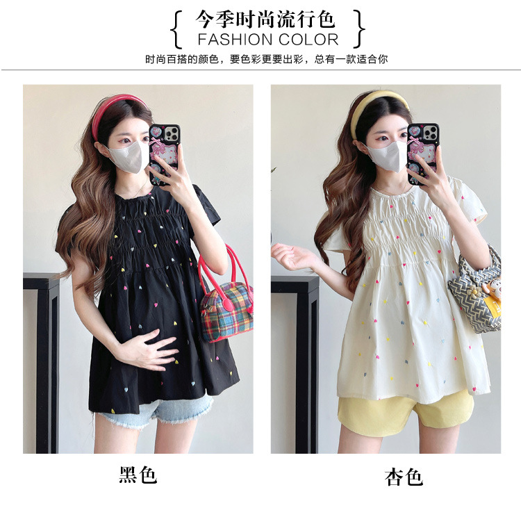 Съемка на месте ~ Новая одежда для беременных летом цветная любовь с вышивкой кукольная рубашка Нежный ветер с короткими рукавами