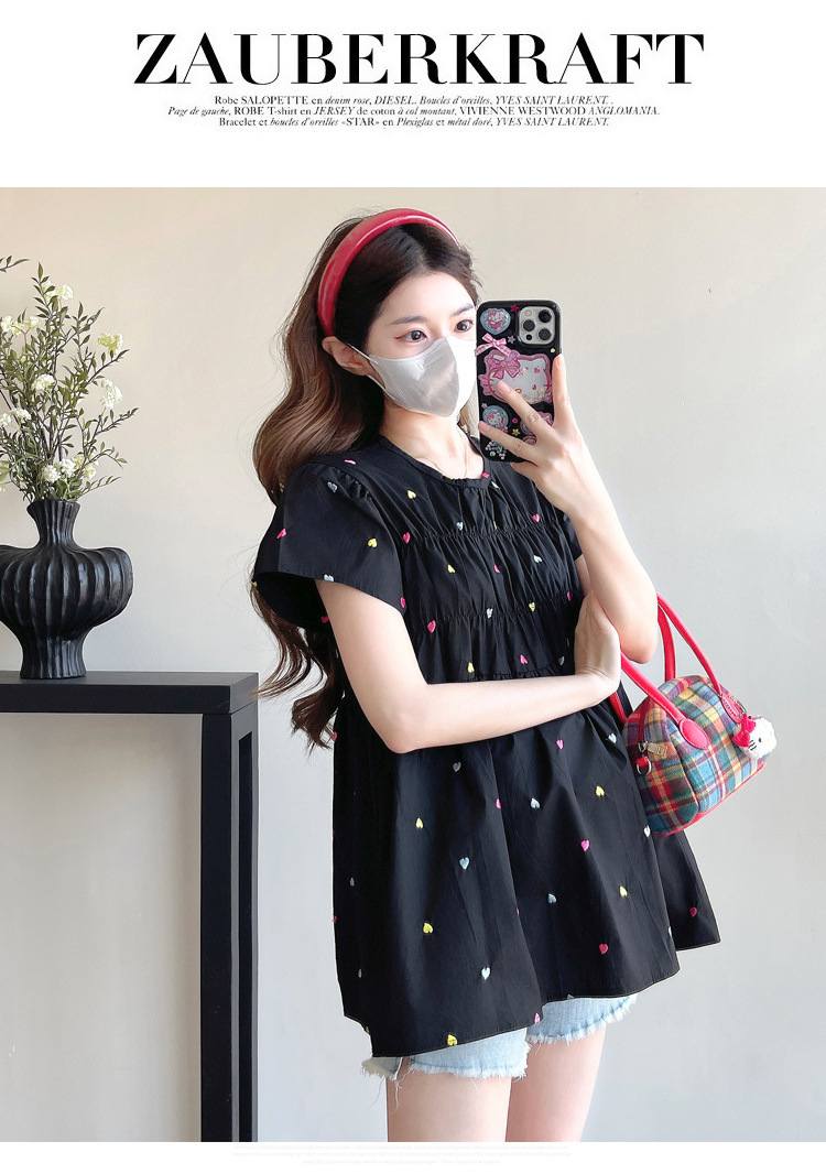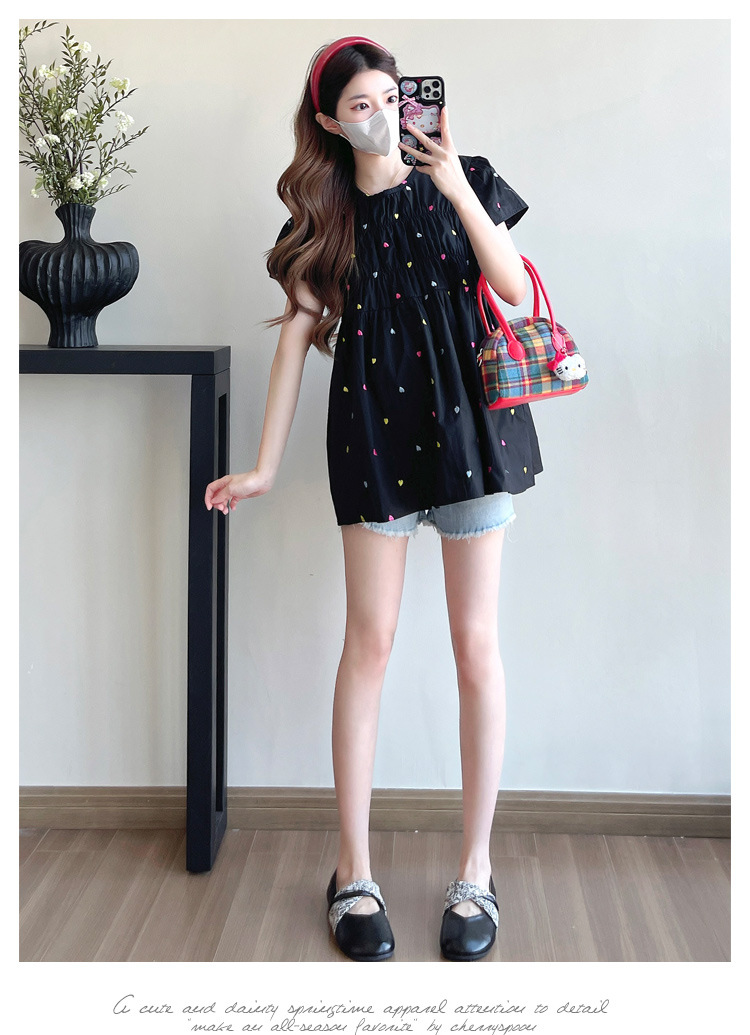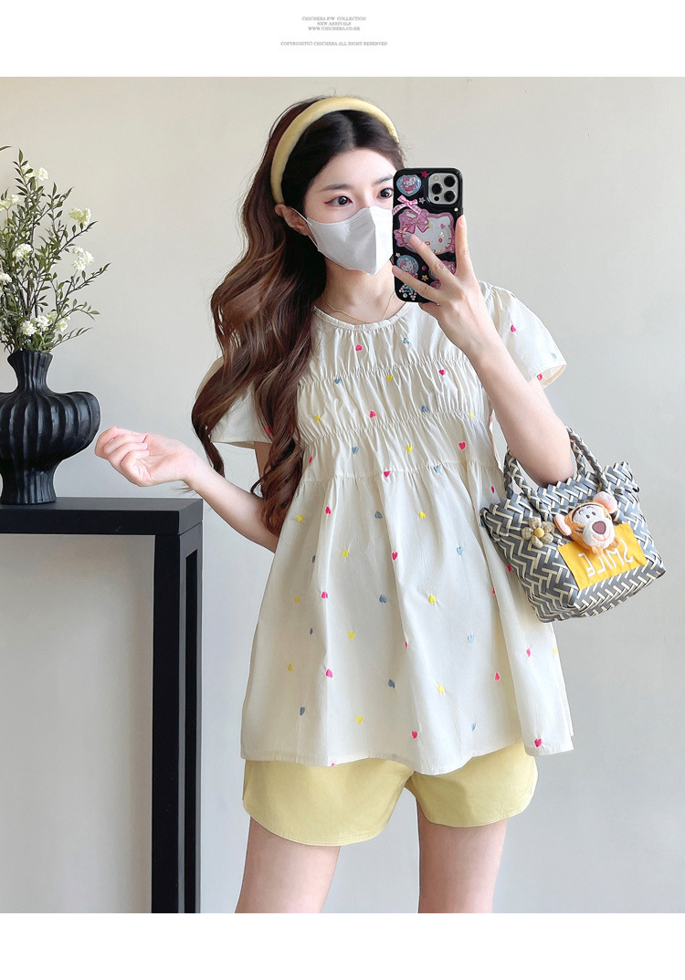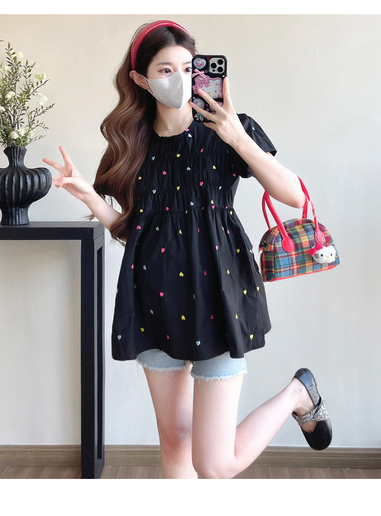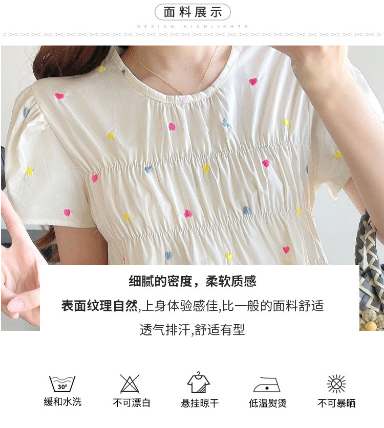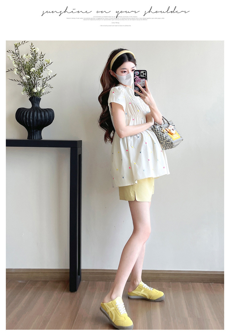 Съемка на месте ~ Новая одежда для беременных летом цветная любовь с вышивкой кукольная рубашка Нежный ветер с короткими рукавами