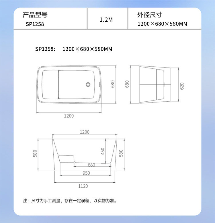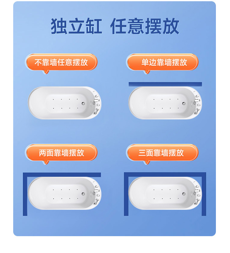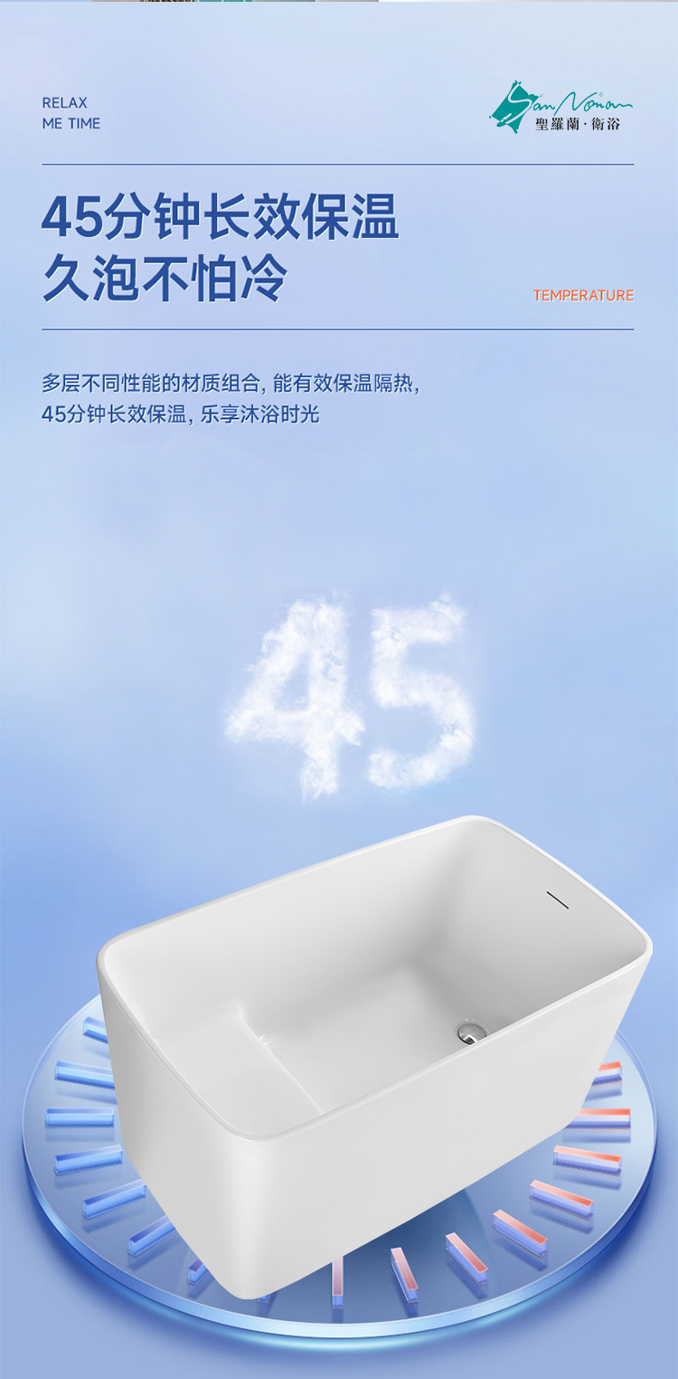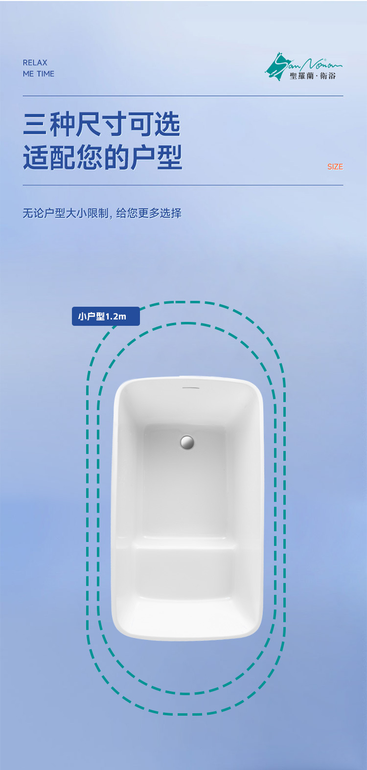 Sannora Ванная комната Маленькая квартира Независимая японская акриловая ванна для взрослых 1.2m Независимая ванна для проживания в семье