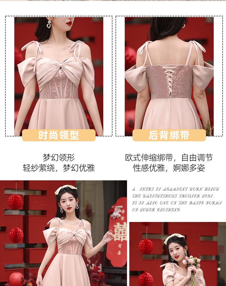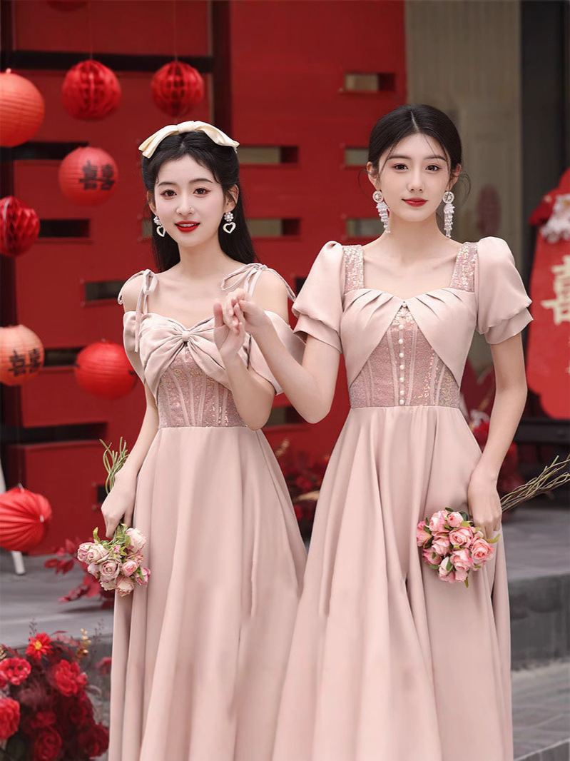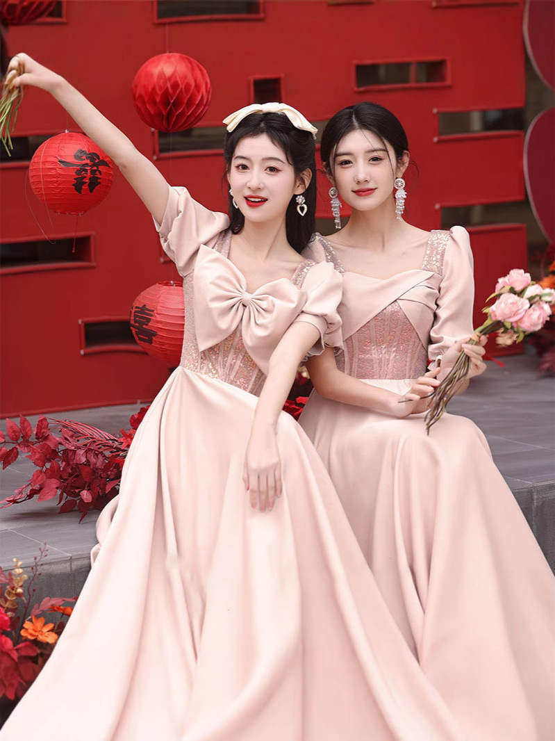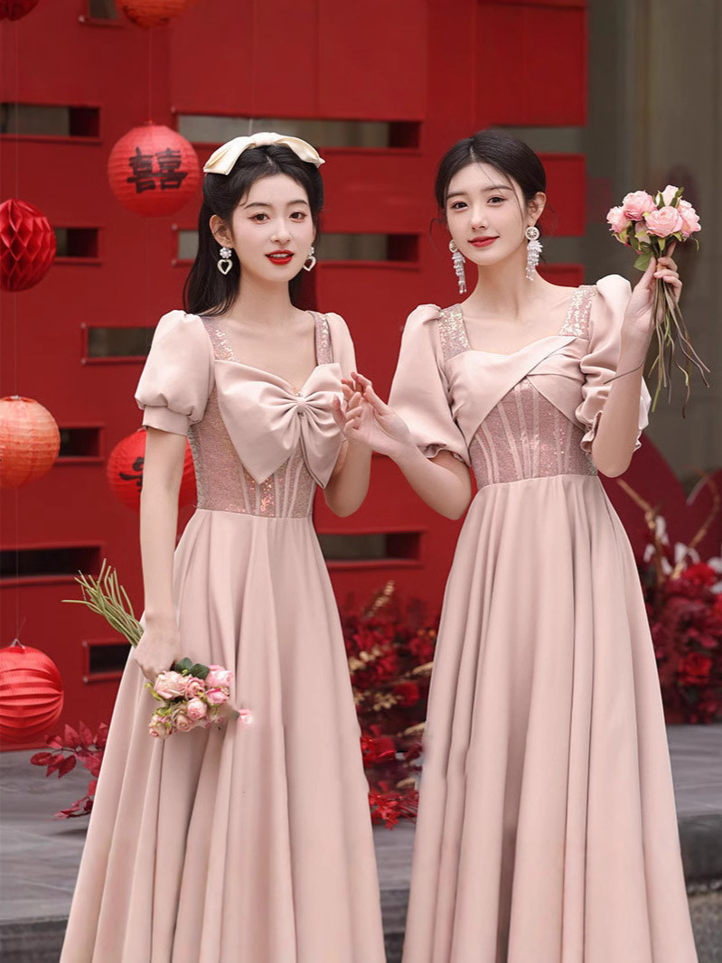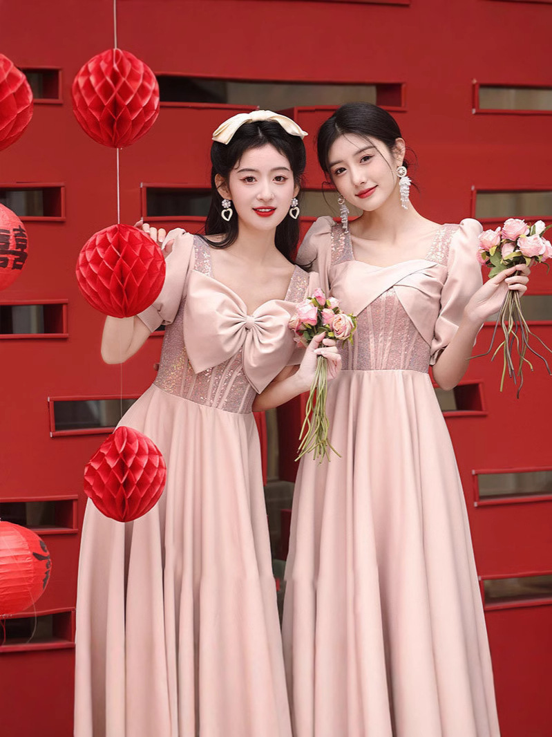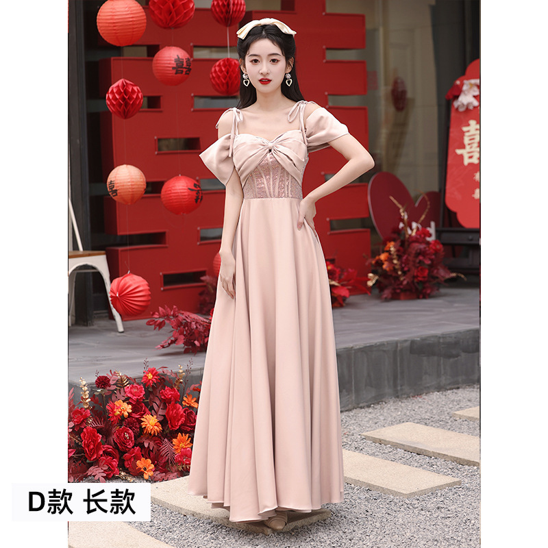 Розовый 2025 новый костюм для подружек невесты высокого уровня атласное платье подружки невесты платье сестра юбка хор банкетное платье