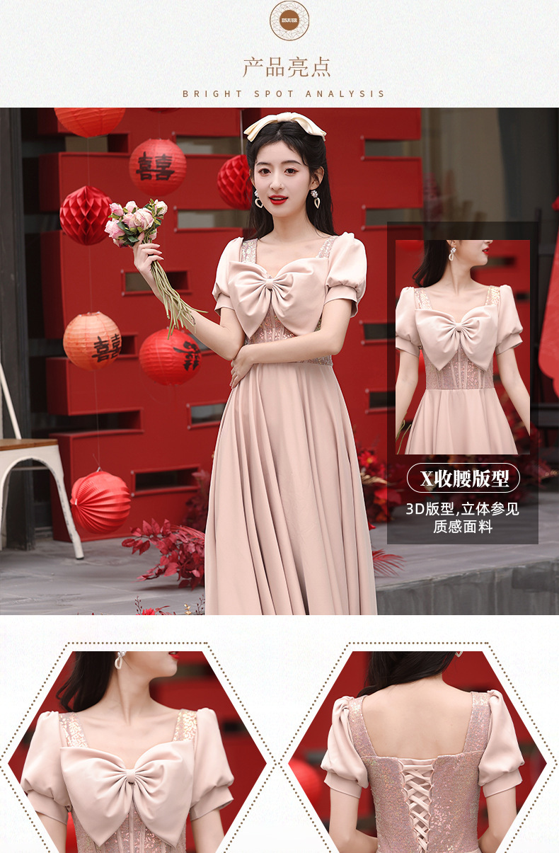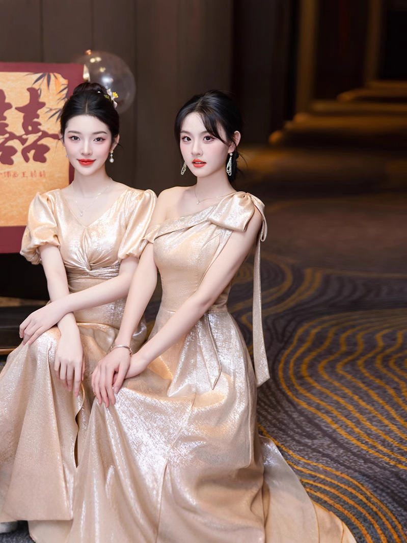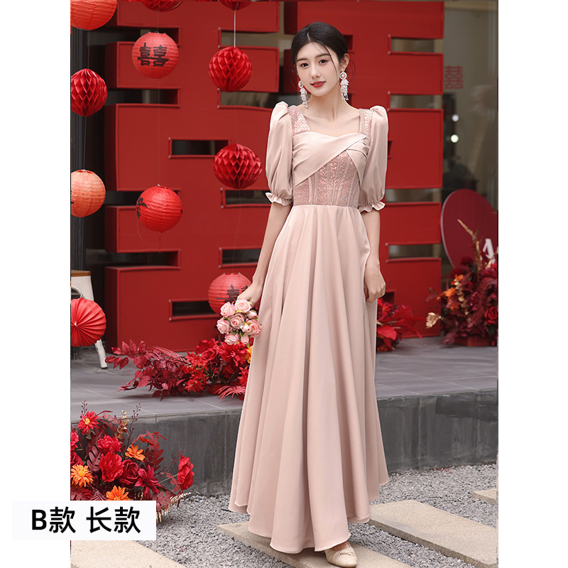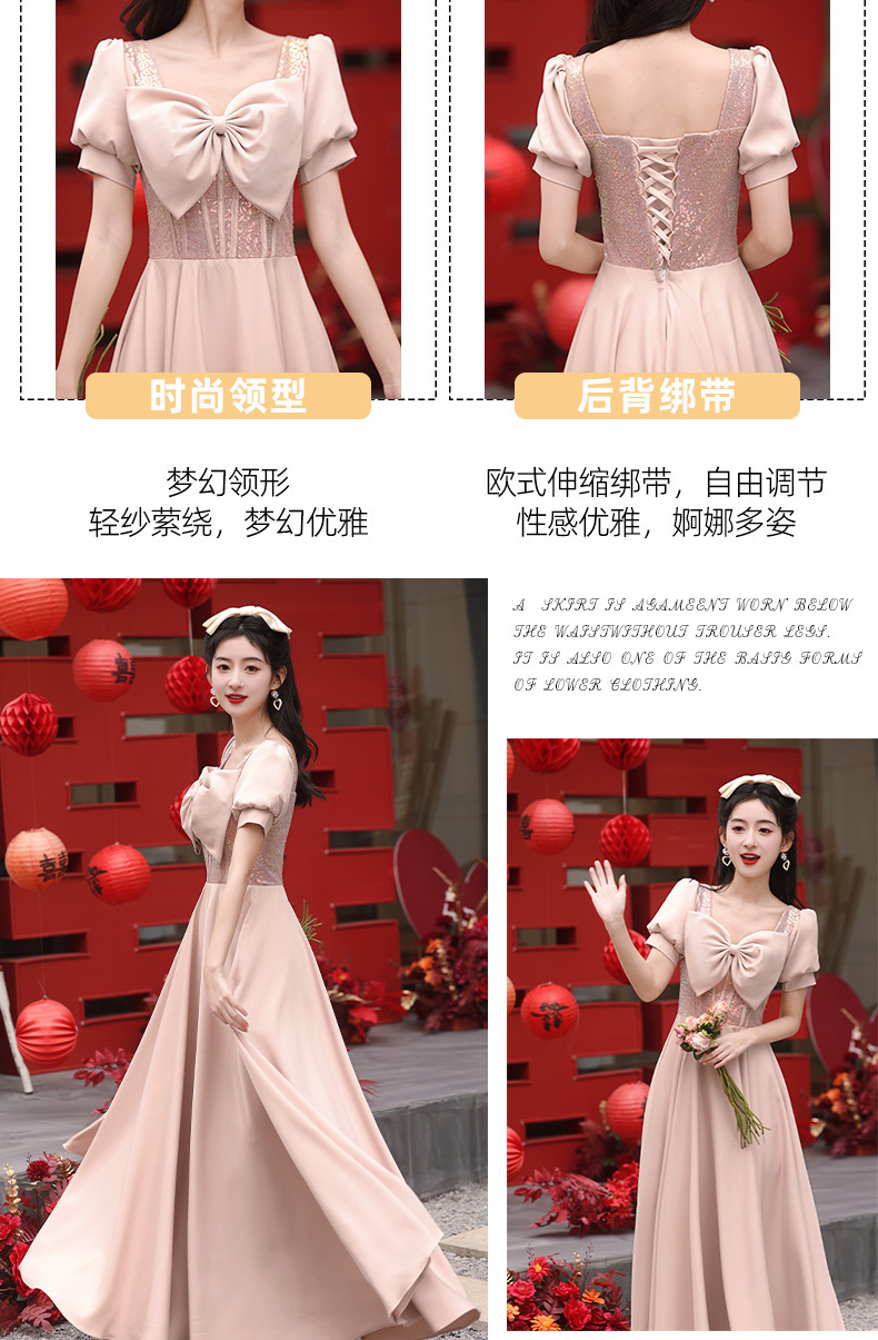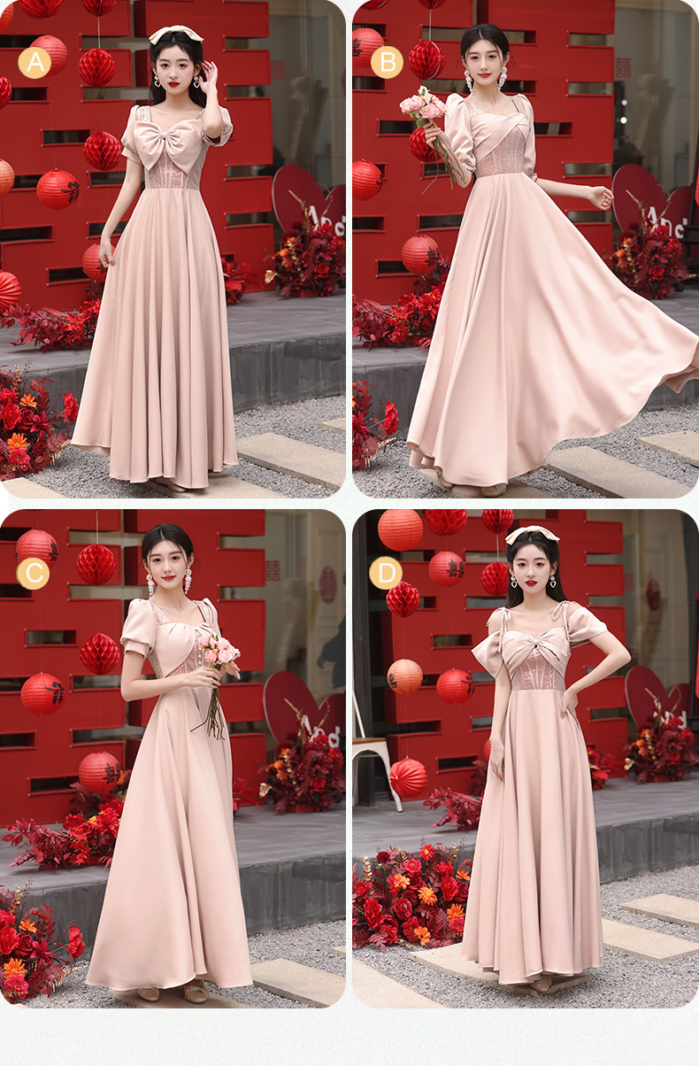 Розовый 2025 новый костюм для подружек невесты высокого уровня атласное платье подружки невесты платье сестра юбка хор банкетное платье
