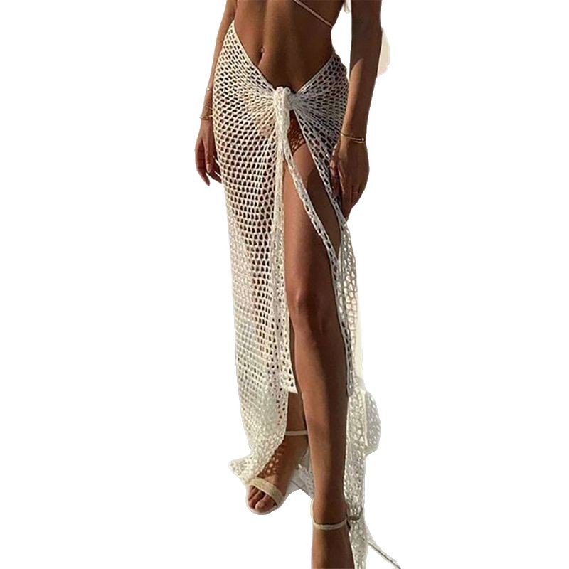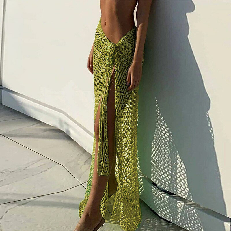 Трансграничная европейская и американская сексуальная полая длинная пляжная юбка сплошной цвет трикотажная юбка для отдыха солнцезащитная сетка длинная юбка