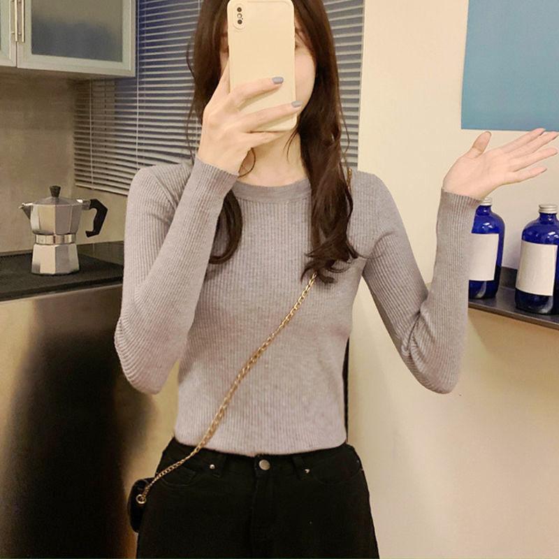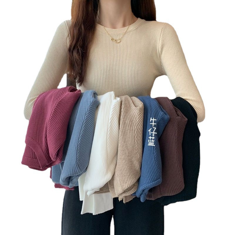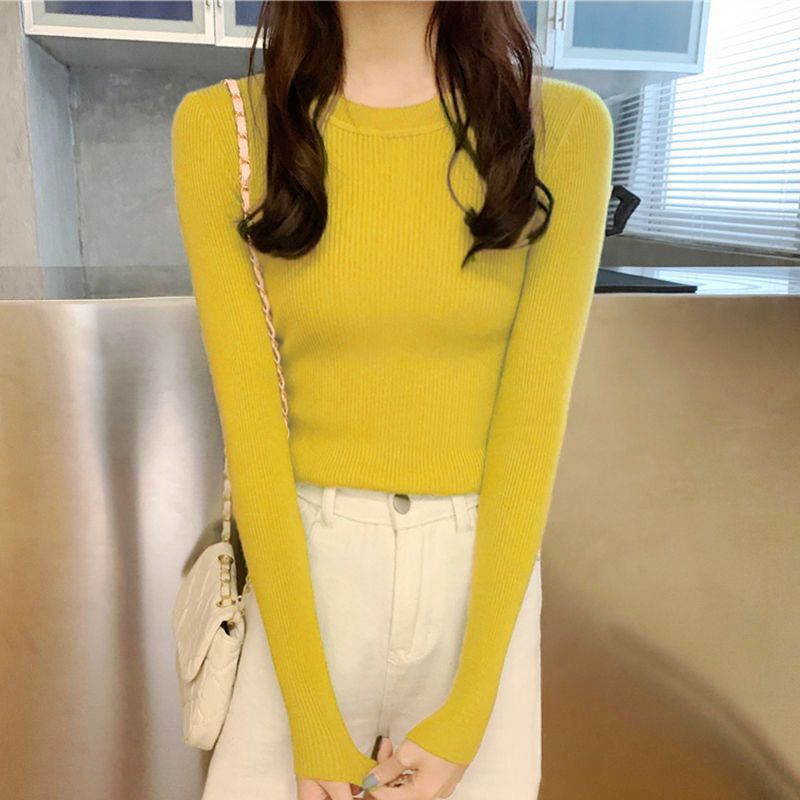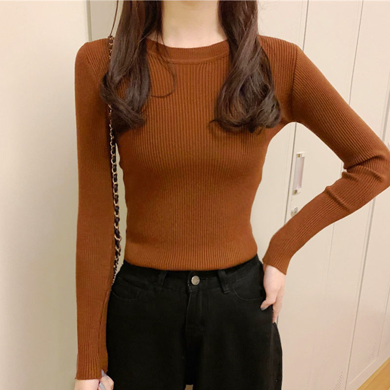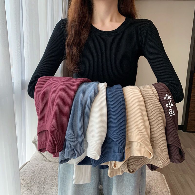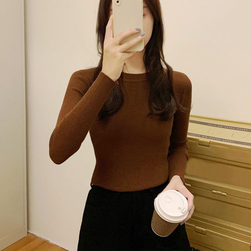 Свитер 2024 новая женская обтягивка с черной нижней рубашкой осенью и зимой с круглым вырезом свитер с длинными рукавами