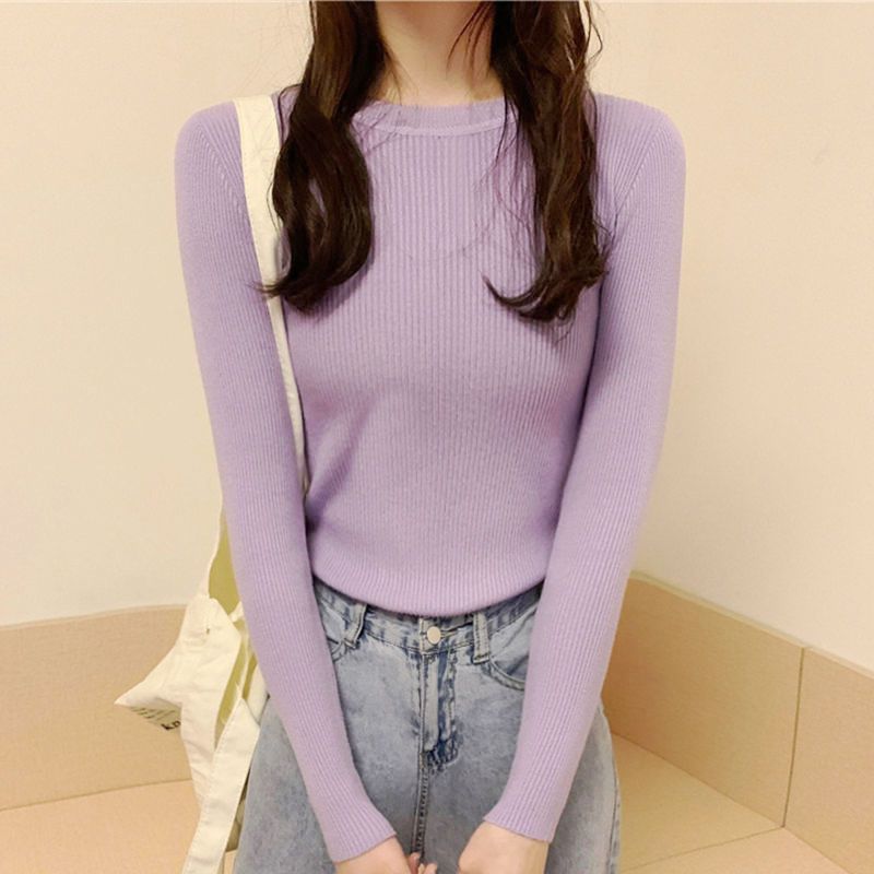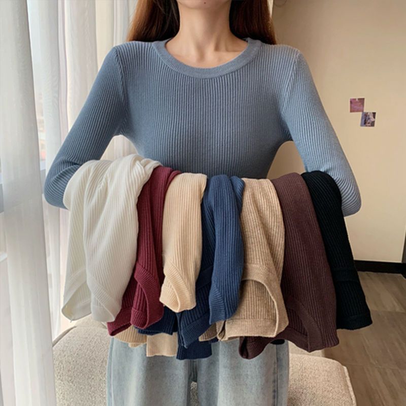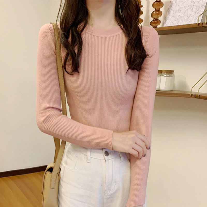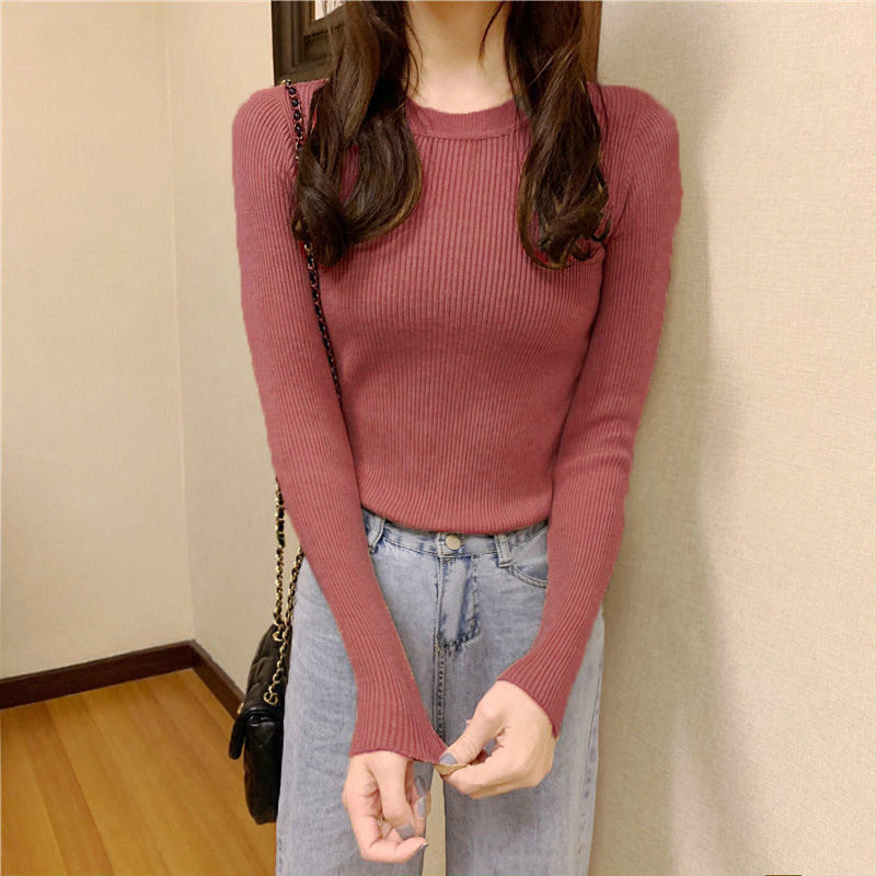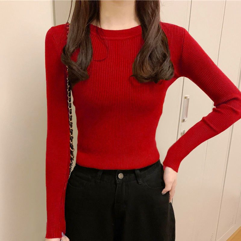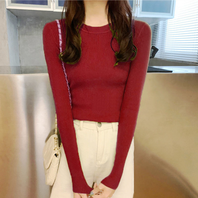 Свитер 2024 новая женская обтягивка с черной нижней рубашкой осенью и зимой с круглым вырезом свитер с длинными рукавами