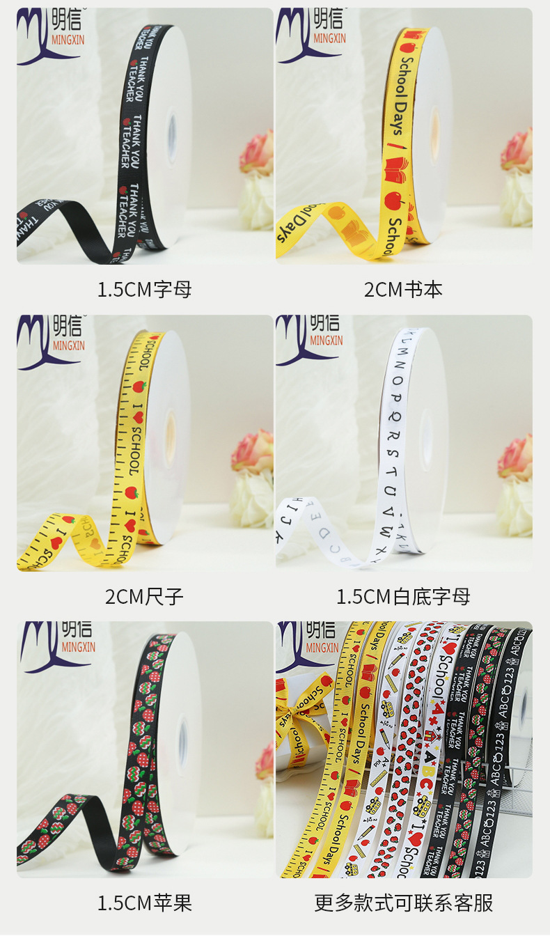 Декоративные ленты с мультяшными рисунками в стиле кампуса для упаковки подарков к началу учебного года, декоративные ленты, завязки для букетов с цветочным принтом.