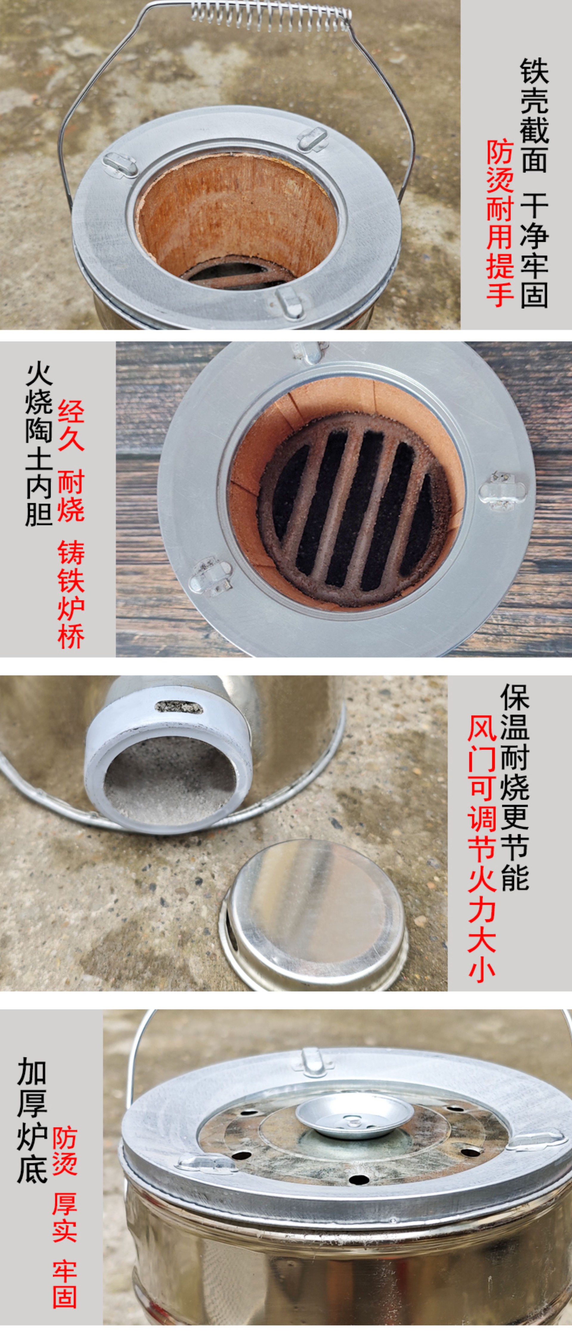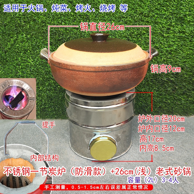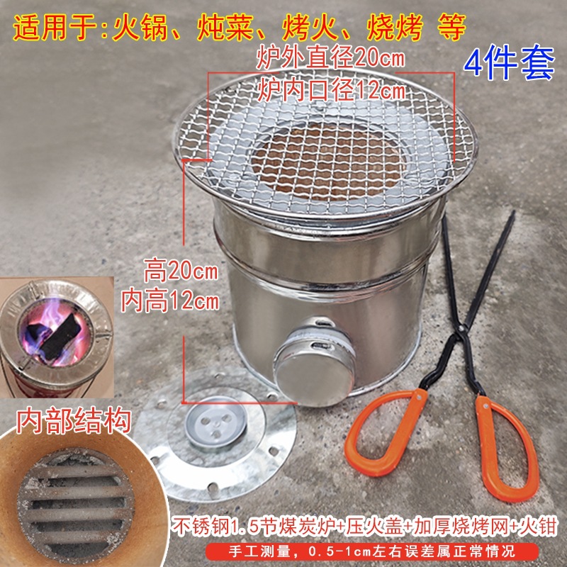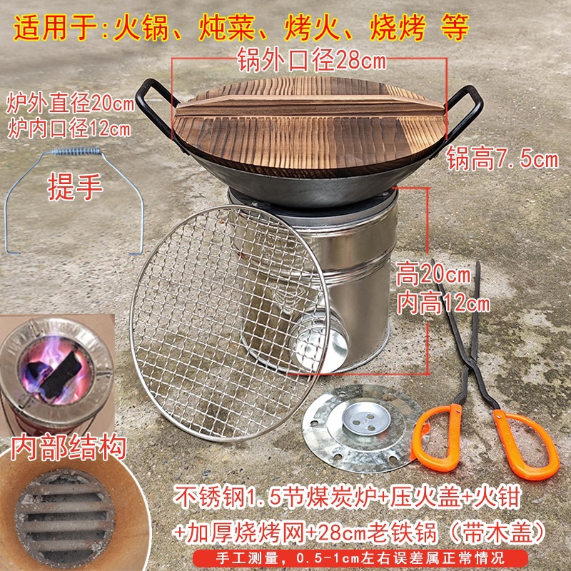 Угольная печь из нержавеющей стали, секция 1,5.; Угольная печь из нержавеющей стали, 1,5 секции + противопожарная крышка под давлением; Угольная печь из нержавеющей стали, 1,5 секции + утолщенная сетка для барбекю.; Угольная печь из нержавеющей стали, 1,5 секции + противопожарная крышка + утолщенная сетка для барбекю + пожарные щипцы; Угольная печь из нержавеющей стали, 1,5 секции + старая железная кастрюля диаметром 28 см (с деревянной крышкой) + противопожарная крышка + утолщенная сетка для барбекю + пожарные щипцы; Угольная печь из нержавеющей стали, 1,5 секции + сковорода в стиле ретро, 27 см.; Угольная печь из нержавеющей стали, 1,5 секции + термостойкая суповая кастрюля диаметром 21 см.; Угольная печь из нержавеющей стали, 1,5 секции + подвесная кастрюля из керамики диаметром 21 см.; Красная угольная печь 1,5 секции; Угольная печь красная 1,5 секции (противоскользящая модель); Двухсекционная угольная печь из нержавеющей стали (двойного назначения); Двухсекционная угольная печь из нержавеющей стали (противоскользящая модель); Одностворчатая угольная печь из нержавеющей стали (двойного назначения); Угольная печь 1 секции из нержавеющей стали (противоскользящая модель); Угольная печь из нержавеющей стали + утолщенная сетка для барбекю.; Двухсекционная угольная печь из нержавеющей стали + утолщенная сетка для барбекю.; Одностворчатая угольная печь из нержавеющей стали + ретро-кастрюля 24 см.; Угольная печь из нержавеющей стали + традиционная железная кастрюля диаметром 24 см.; Трехсекционная угольная печь из нержавеющей стали (двойного назначения); топливный пакет; Плоскогубцы с красной пластиковой ручкой; Сетка для барбекю 26,5 см с ручкой.; Крышка для угольной печи; Железный кронштейн 22 см (без угольной печи)