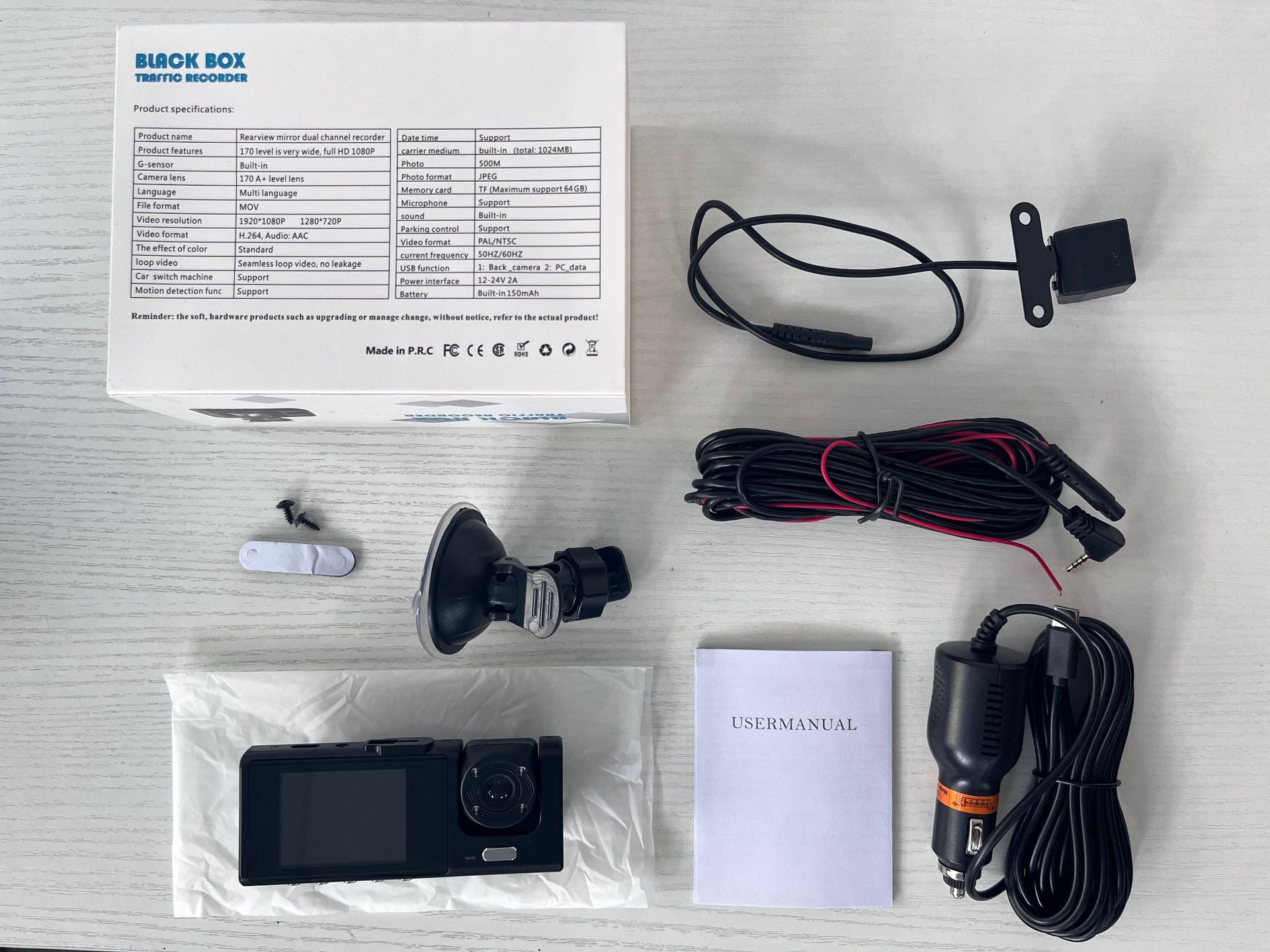 Настройте трехрекордерный видеорегистратор 1080P с рисунками и образцами, без проводки, без установки, автомобильный видеорегистратор высокой четкости.