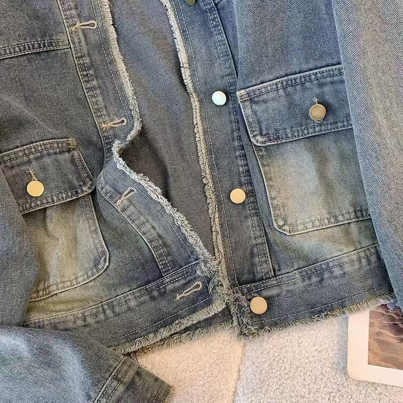 Ретро мойка джинсовая куртка женская весна и осень новая корейская версия свободного дикого маленького короткого пиджака