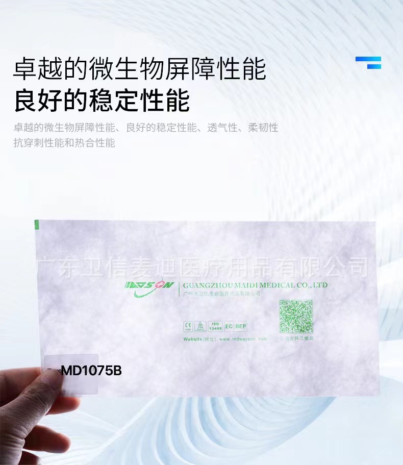1、采用国产闪蒸法材料,MD1075B、MD8001 结合了我司的涂布技术, 可根据客户要求定制纸张外轮廓适用于环氧乙烷灭菌,辐照灭菌;