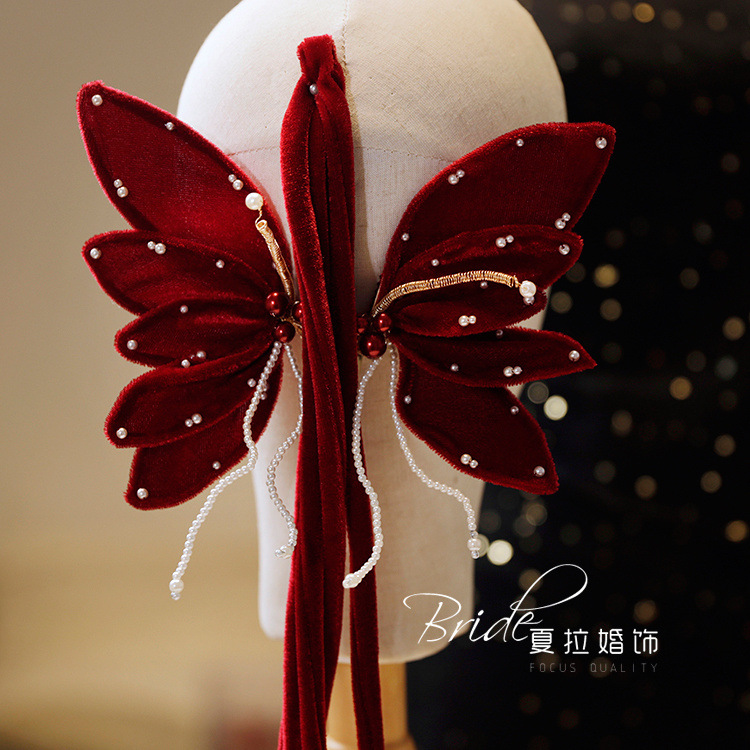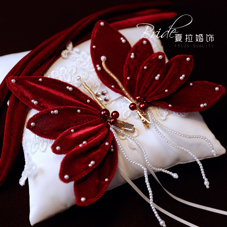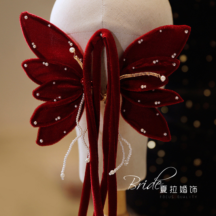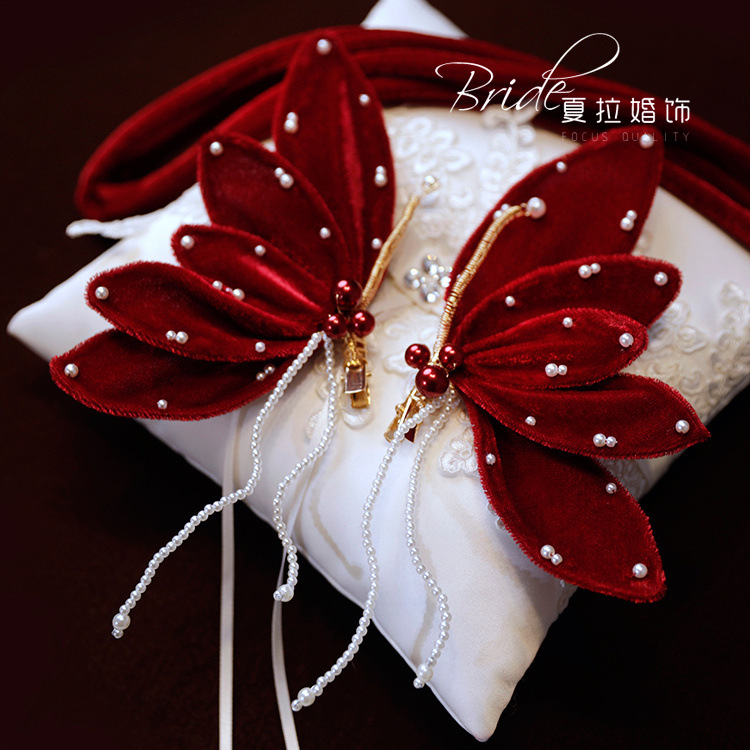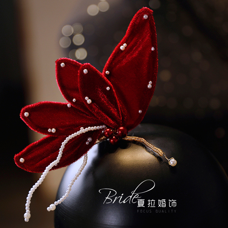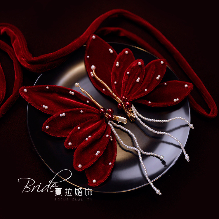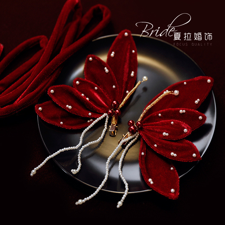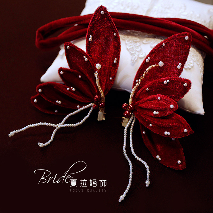 Новый темперамент невесты вино красная бабочка набор заколки для волос невесты платье тост