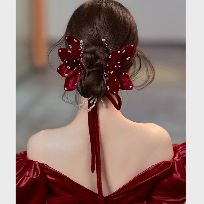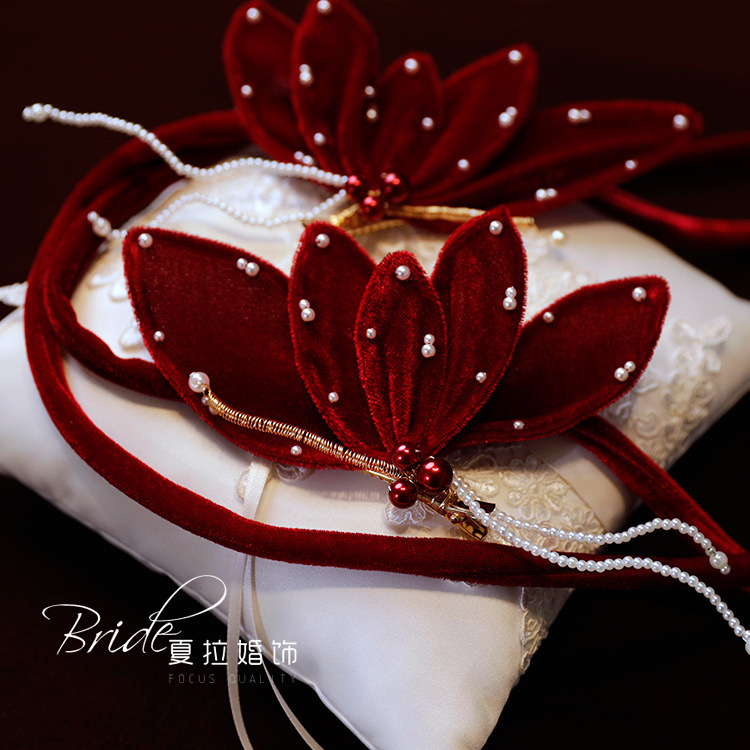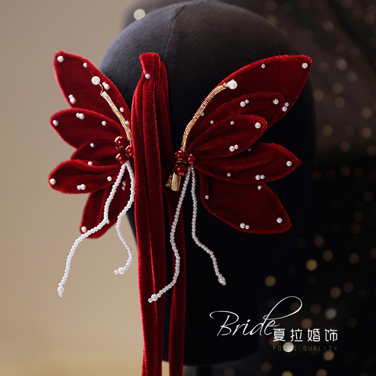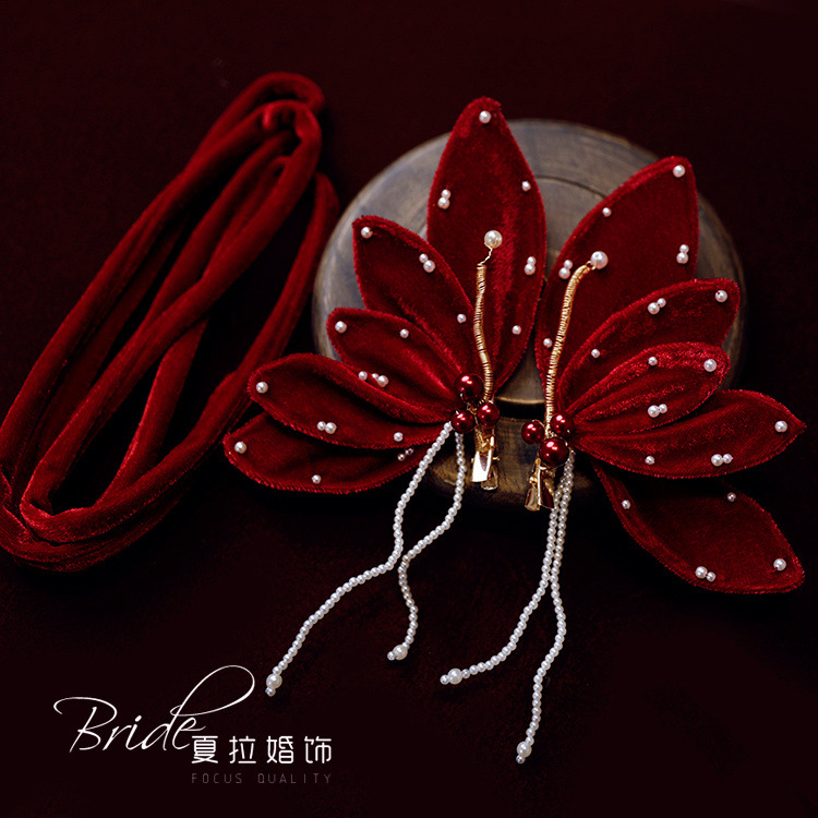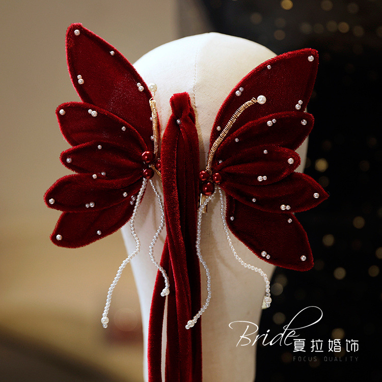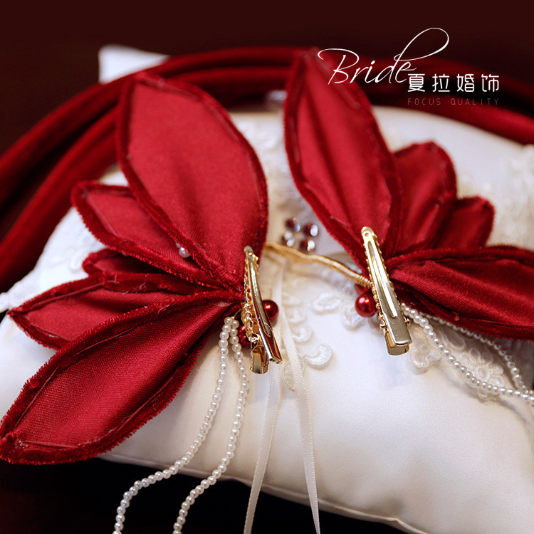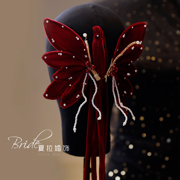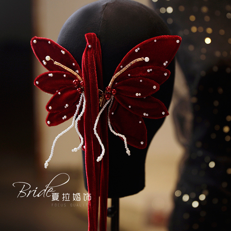 Новый темперамент невесты вино красная бабочка набор заколки для волос невесты платье тост