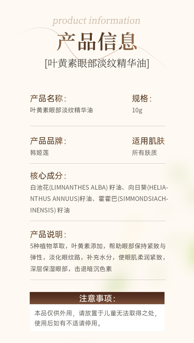 Han Jilian Lutein Eye Lightening Essence Oil Увлажняющий и увлажняющий крем для глаз для укрепления, борьбы с морщинами и уменьшения темных кругов под глазами