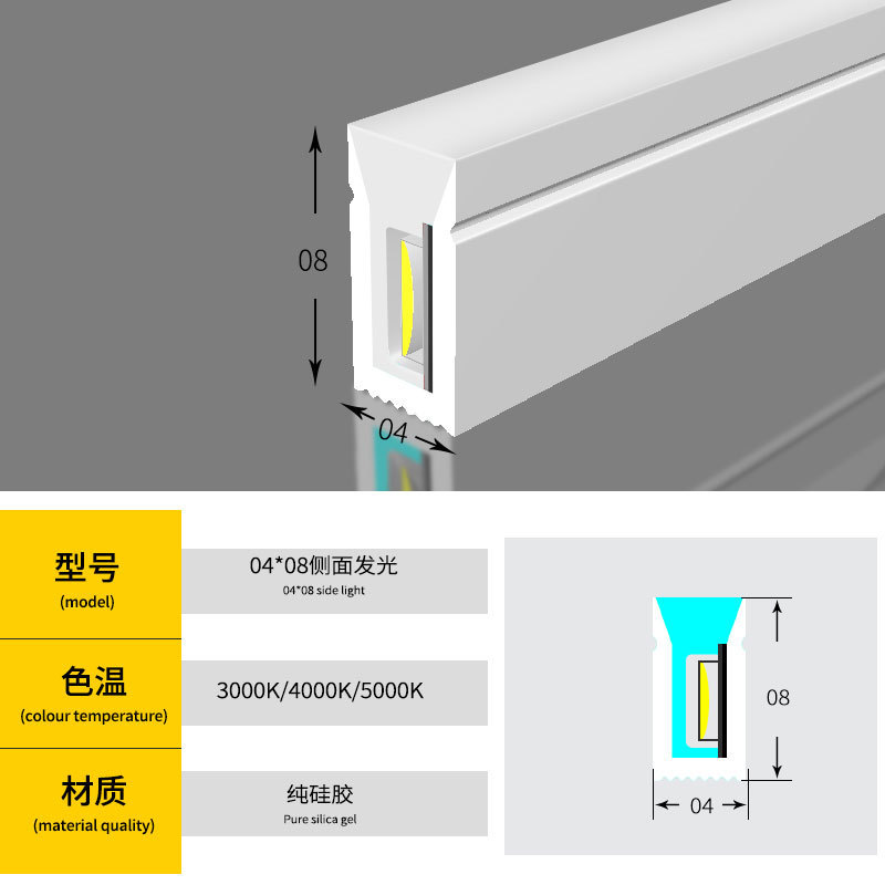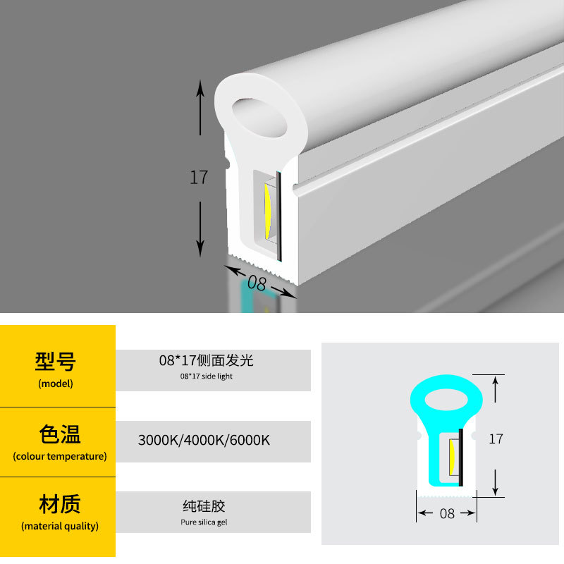 Светодиодная силиконовая лента, накладная, встраиваемая, интегрированная, экструдированная, гибкая, формовляемая, для наружного применения, мягкая, водонепроницаемая.