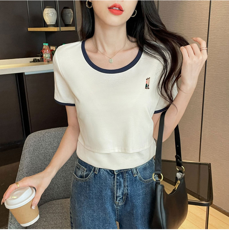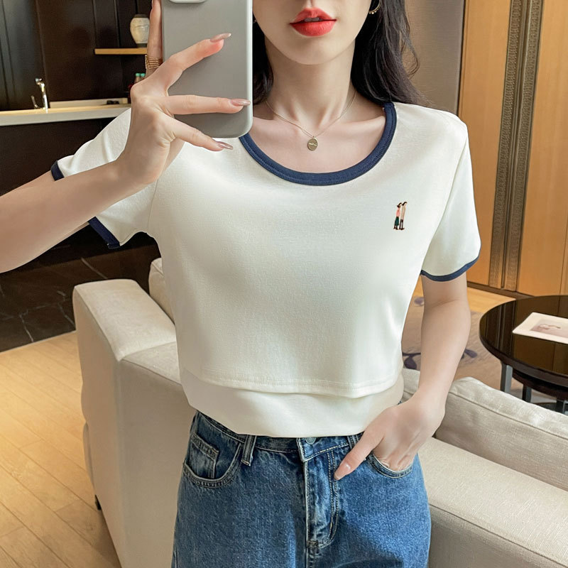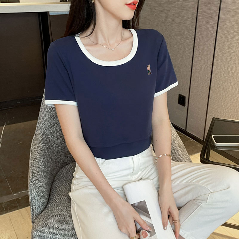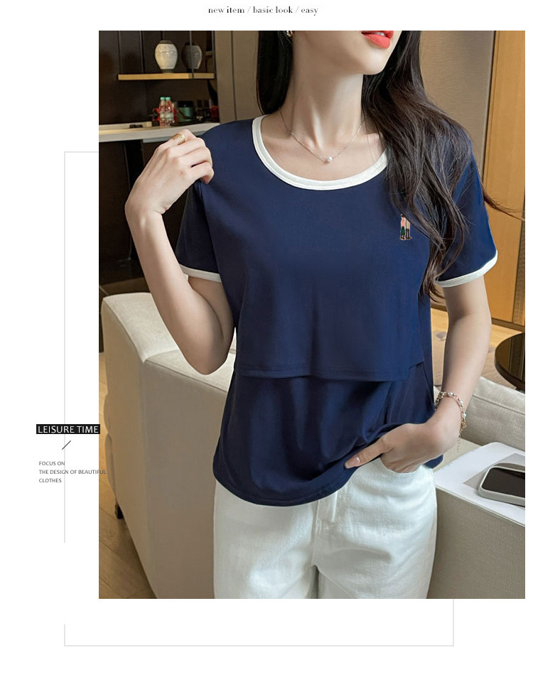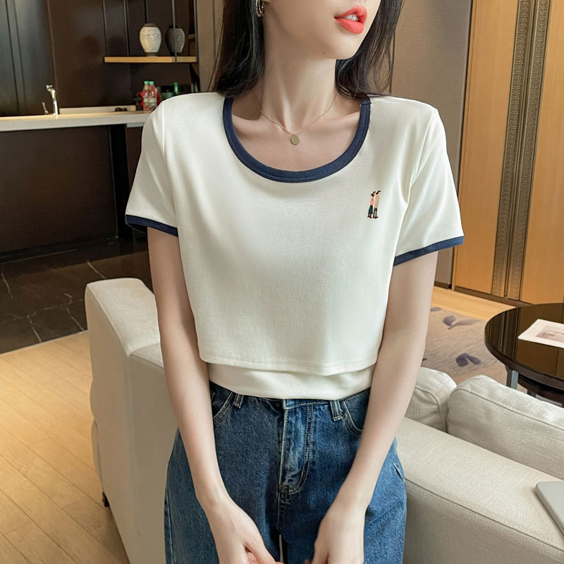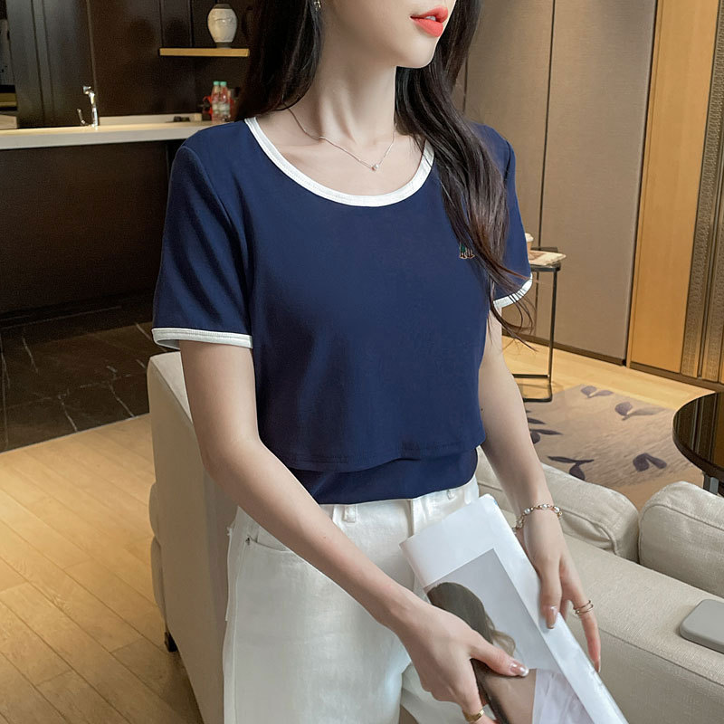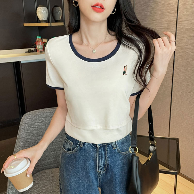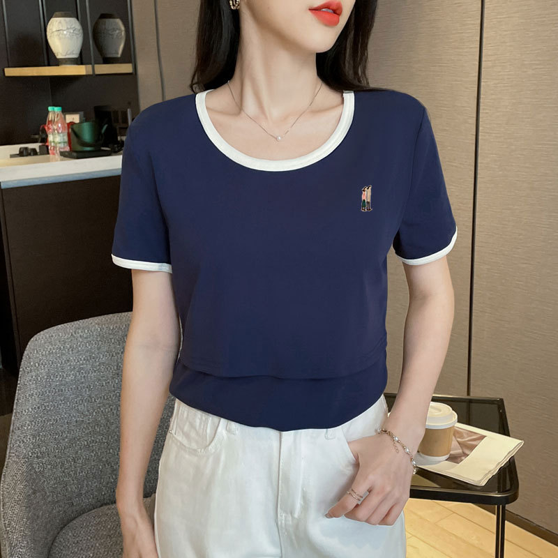 Кормящая хлопчатобумажная футболка для беременных летом с короткими рукавами и круглым вырезом