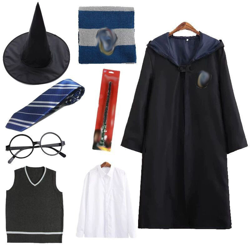 Красный плащ цельный; Зеленый плащ цельный; Синий плащ, цельный предмет; Желтый плащ цельный; (Комплект из двух предметов) красный плащ + галстук; (Комплект из двух предметов) Зеленый плащ + галстук; (Комплект из двух предметов) синий плащ + галстук; (Комплект из двух предметов) желтый плащ + галстук; (Комплект из трех предметов) красный плащ + галстук + шарф; (Комплект из трех предметов) зеленый плащ + галстук + шарф; (Комплект из трех предметов) синий плащ + галстук + шарф; (Комплект из трех предметов) желтый плащ + галстук + шарф; (Набор из пяти предметов) красный одинарный халат + галстук + шарф + рамка для зеркала + волшебная палочка; (Набор из пяти предметов) Зеленый одинарный халат + галстук + шарф + рамка для зеркала + волшебная палочка; (Набор из пяти предметов) Синий одинарный халат + галстук + шарф + рамка для зеркала + волшебная палочка; (Набор из пяти предметов) Желтый одинарный халат + галстук + шарф + рамка для зеркала + волшебная палочка; (Набор из шести предметов) красный халат + галстук + шарф + рамка для зеркала + волшебная палочка + шляпа волшебника; (Набор из шести предметов) Зеленый халат + галстук + шарф + рамка для зеркала + волшебная палочка + шляпа волшебника; (Набор из шести предметов) Синий одинарный халат + галстук + шарф + рамка для зеркала + волшебная палочка + шляпа волшебника; (Набор из шести предметов) Желтый одинарный халат + галстук + шарф + рамка для зеркала + волшебная палочка + шляпа волшебника; (Набор из семи предметов) красный халат + галстук + шарф + рамка + волшебная палочка + шляпа волшебника + рубашка; (Набор из семи предметов) Зеленый халат + галстук + шарф + рамка для зеркала + волшебная палочка + шляпа волшебника + рубашка; (Набор из семи предметов) Синий одинарный халат + галстук + шарф + рамка для зеркала + волшебная палочка + шляпа волшебника + рубашка; (Набор из семи предметов) Желтый одинарный халат + галстук + шарф + рамка для зеркала + волшебная палочка + шляпа волшебника + рубашка; (Набор из восьми предметов) красный халат + галстук + шарф + рамка для зеркала + волшебная палочка + шляпа волшебника + рубашка + свитер; (Набор из восьми предметов) Зеленый халат + галстук + шарф + рамка для зеркала + волшебная палочка + шляпа волшебника + рубашка + свитер; (Набор из восьми предметов) Синий одинарный халат + галстук + шарф + рамка для зеркала + волшебная палочка + шляпа волшебника + рубашка + свитер; (Набор из восьми предметов) Желтый одинарный халат + галстук + шарф + рамка для зеркала + волшебная палочка + шляпа волшебника + рубашка + свитер; черные брюки; серая юбка