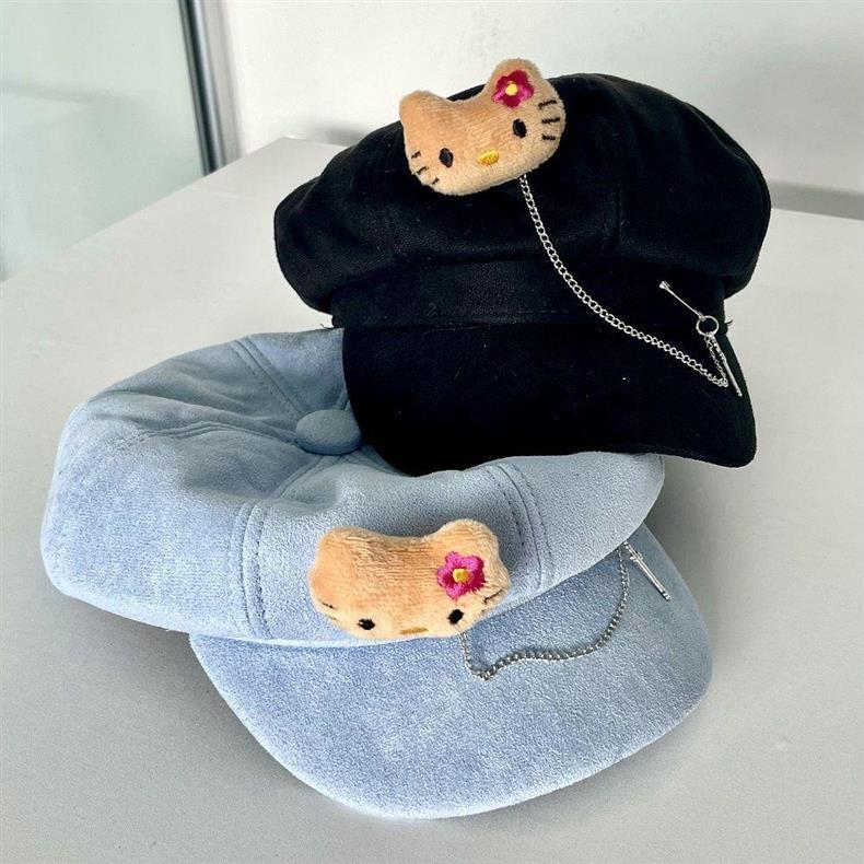 Новая модель ручной работы Горячая девушка восьмиугольная шляпа многоцветная цепочка kitty крест дикая вода художник берет тонкий
