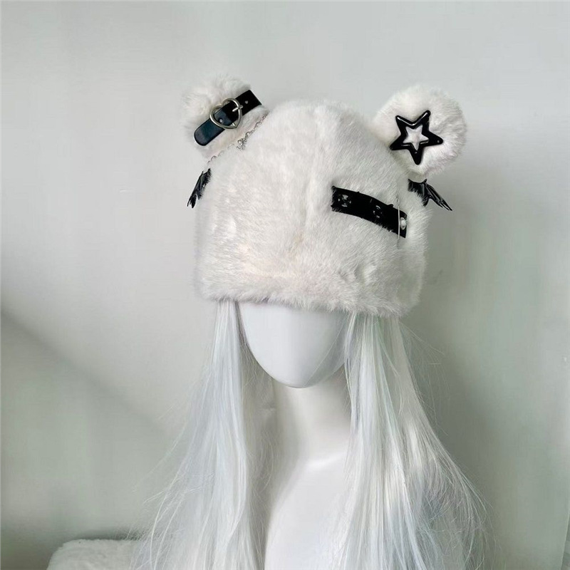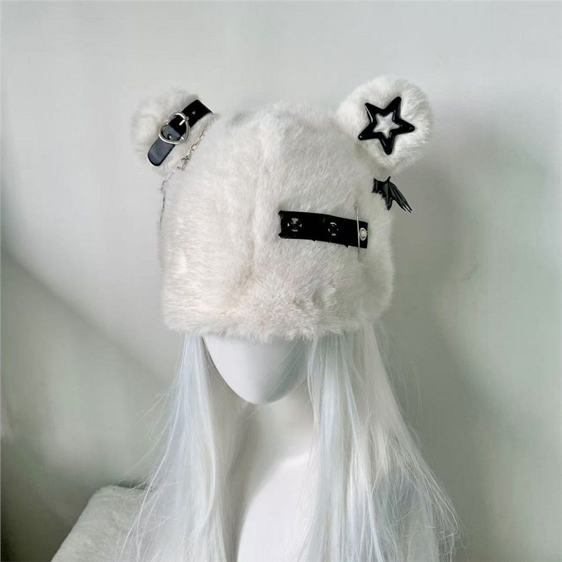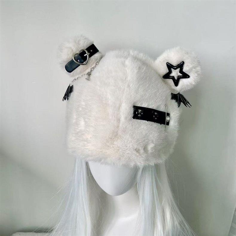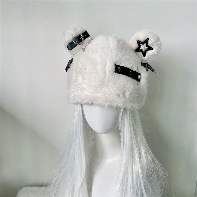 Оригинальный дизайн дьявол крыло медведь ухо шляпа женская осень-зима теплая шляпа y2k Millennium панк дыня шапка