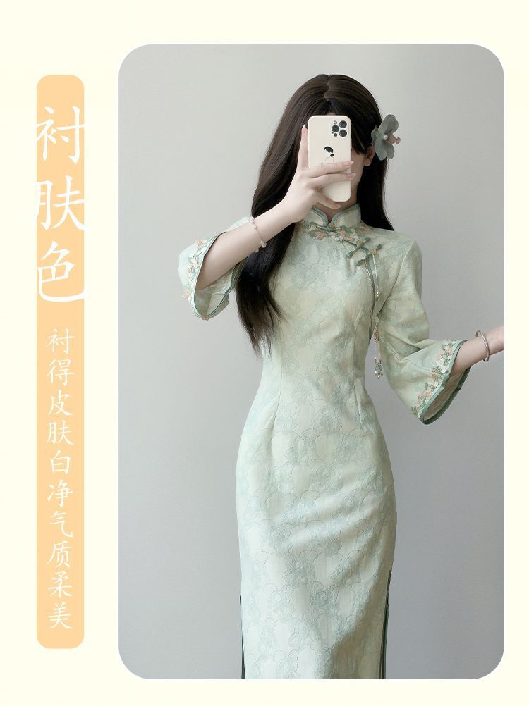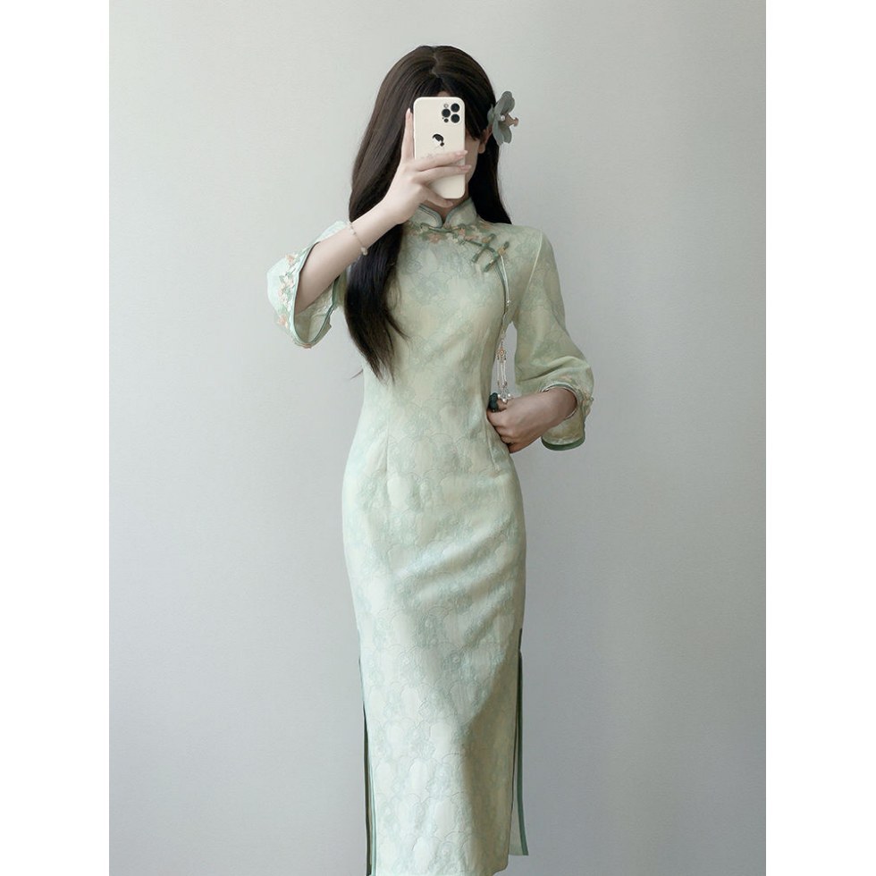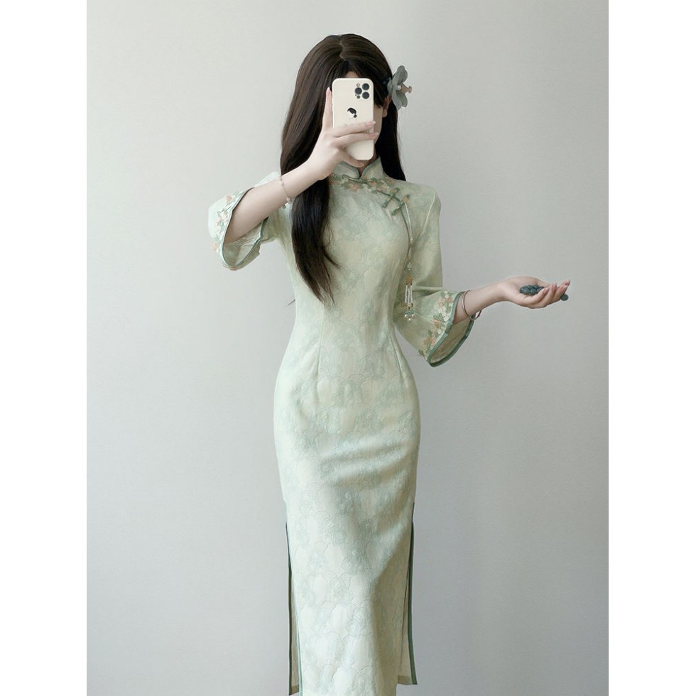 Cheongsam 2025 новый национальный ветер девушка молодая повседневная с большими рукавами улучшенная версия нового китайского платья