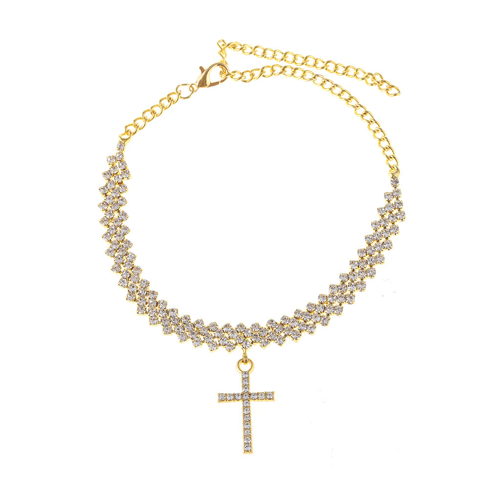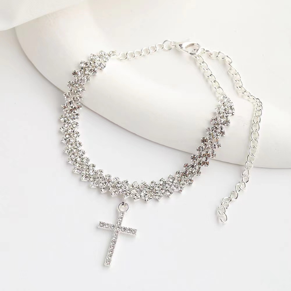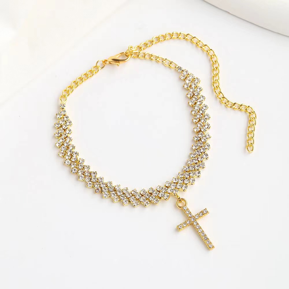 Европейский и американский хит продаж: модный браслет на ногу с крестом из страз, популярные европейские и американские элементы, новый блестящий браслет на ногу с инкрустацией стразами.