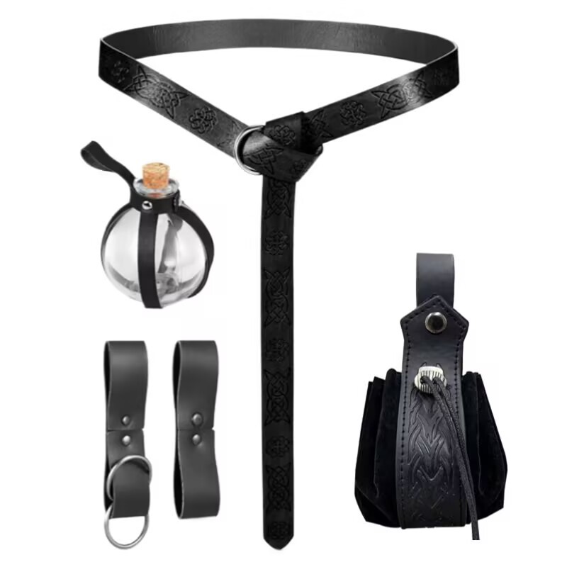 Пара бронзовых браслетов; Пара черных браслетов.; Пара темно-коричневых браслетов.; Классический черный пояс; Классический ремень с рисунком коры; Черная сумка-пистолет с черными заклепками; Коричневая сумка-пистолет с черными заклепками; Черный пояс с рисунком коры, комплект из 5 предметов [юбка с костяным узором, пряжка, стеклянная бутылка]; Коричневый пояс с рисунком коры, комплект из 5 предметов [юбка с костяным узором, пряжка, стеклянная бутылка]; Черный пояс с рисунком коры, набор из 5 предметов [сумка с рисунком меча, стеклянная бутылка с листьями]; Кофейный пояс с рисунком коры, набор из 5 предметов [стеклянная бутылка с рисунком меча, лист, стеклянная бутылка]; Ремень с листьями, черный, набор из 5 предметов [сумка с листьями, пряжка ремня, стеклянная бутылка с листьями]; Ремень с листьями, коричневый, набор из 5 предметов [сумка с листьями, пряжка ремня, стеклянная бутылка с листьями]