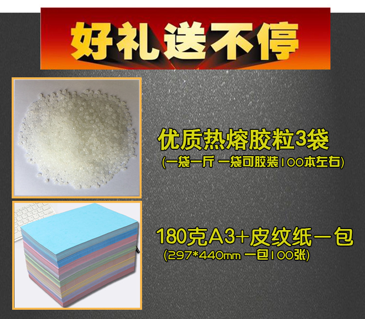 Обычная одноблочная клеевая переплетная машина; Набор из двух частей: склеивающая машина + резак для бумаги; Набор из трех предметов для резки бумаги для переплета клеем; Модернизированная машина для переплета голосовых объявлений (одиночная машина для переплета); Модернизированная переплетная машина + набор из двух частей резака для бумаги; Модернизированный набор из трех частей: переплетная машина + резак для бумаги + биговальная машина.; Машина для переплета с одной смещением голосовой модели (черная модель); Машина для переплета клея голосового типа + резак для бумаги, две части (черная модель); Машина для переплета голосовых моделей + резак для бумаги + машина для биговки, набор из трех предметов (черная модель)