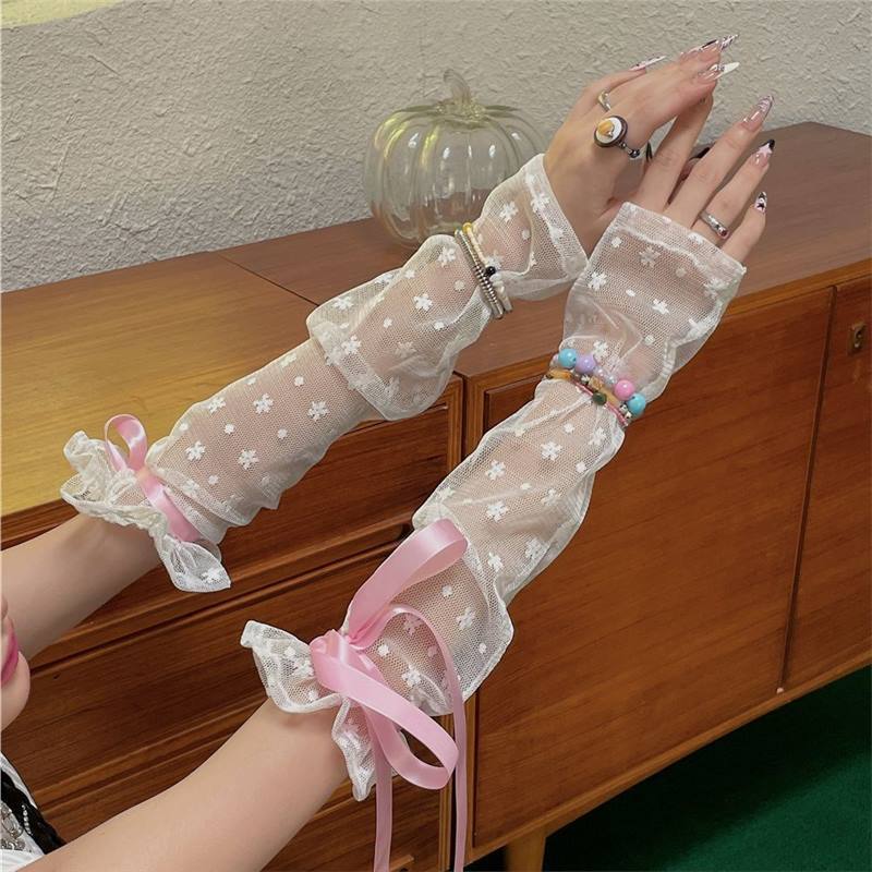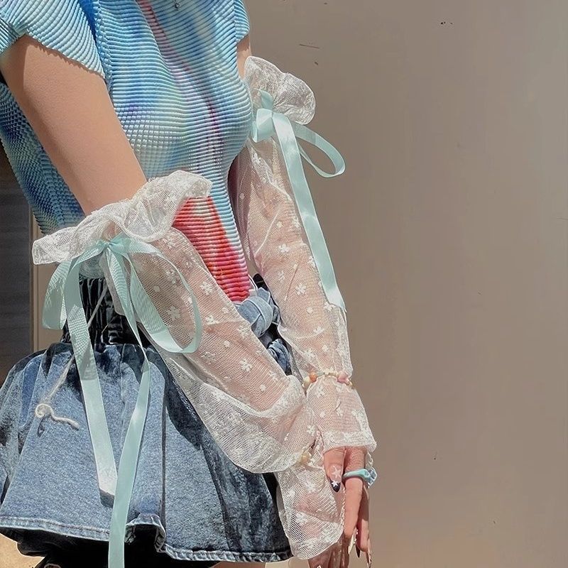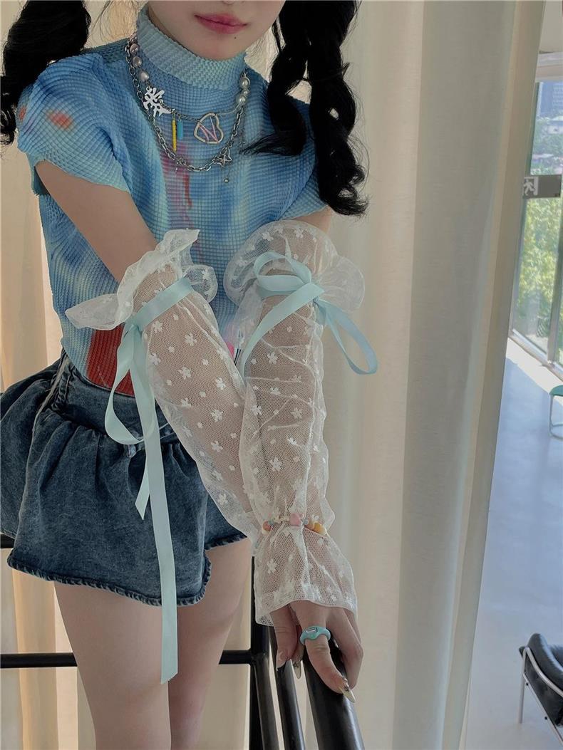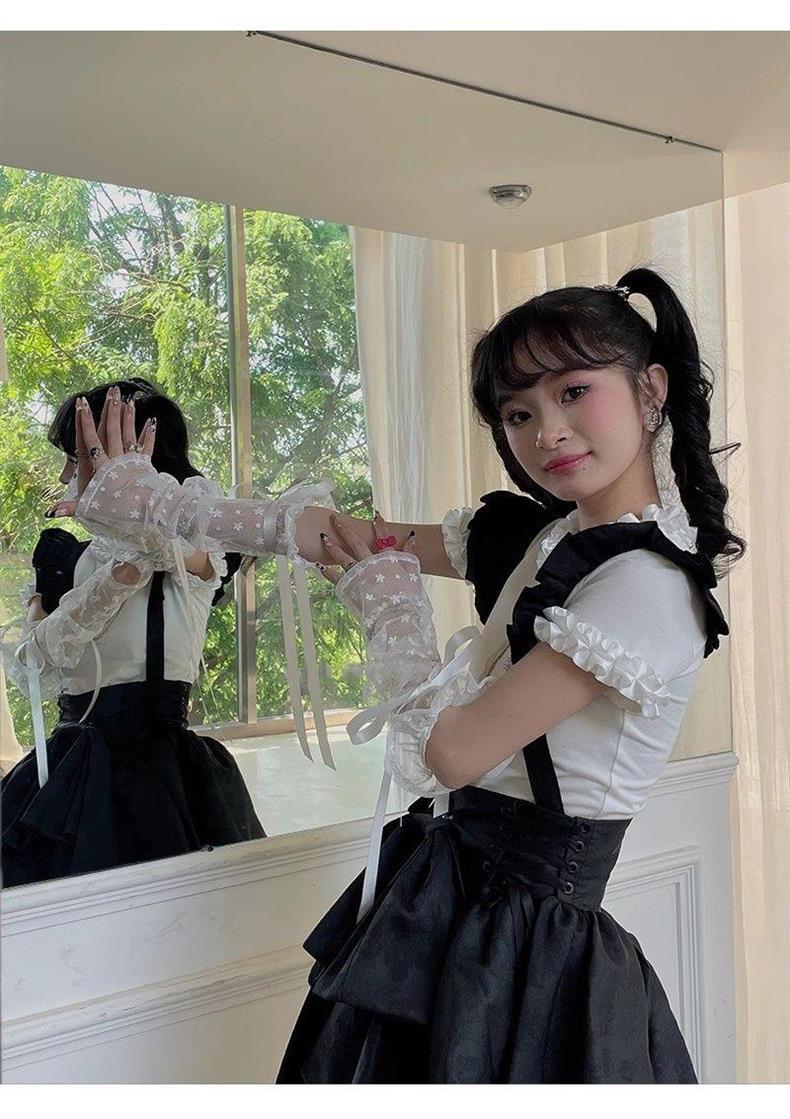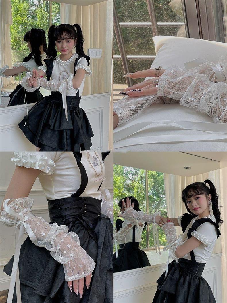 Милая девочка с белыми рукавами и розовой лентой; Милая девочка с белыми рукавами и синей лентой; Милая девочка с белыми рукавами и белой лентой; Сладкие крутые черные рукава-черная лента
