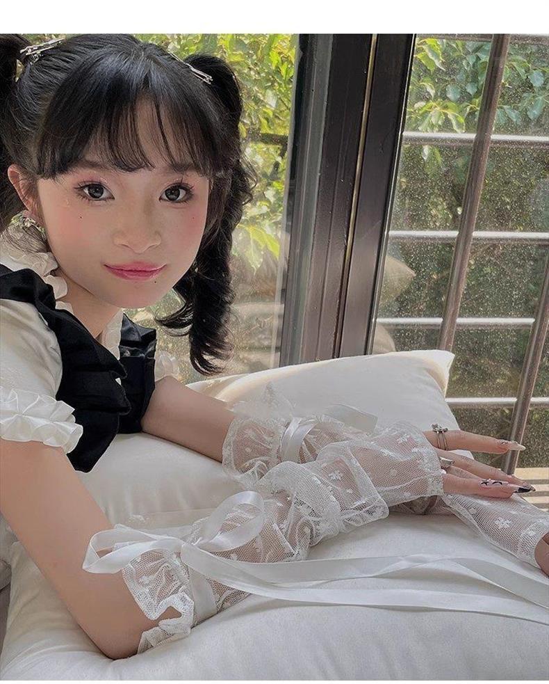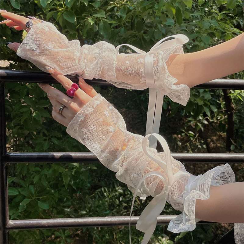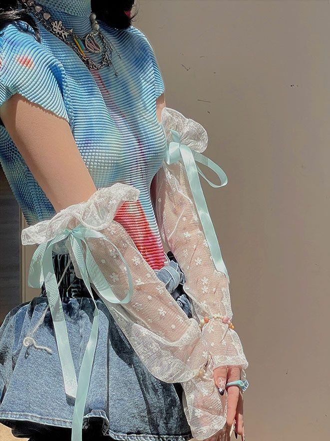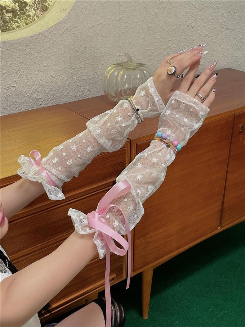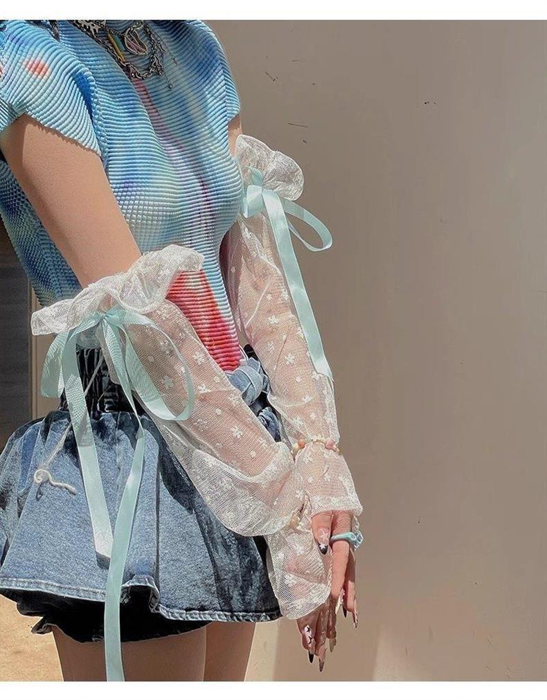 Милая девочка с белыми рукавами и розовой лентой; Милая девочка с белыми рукавами и синей лентой; Милая девочка с белыми рукавами и белой лентой; Сладкие крутые черные рукава-черная лента