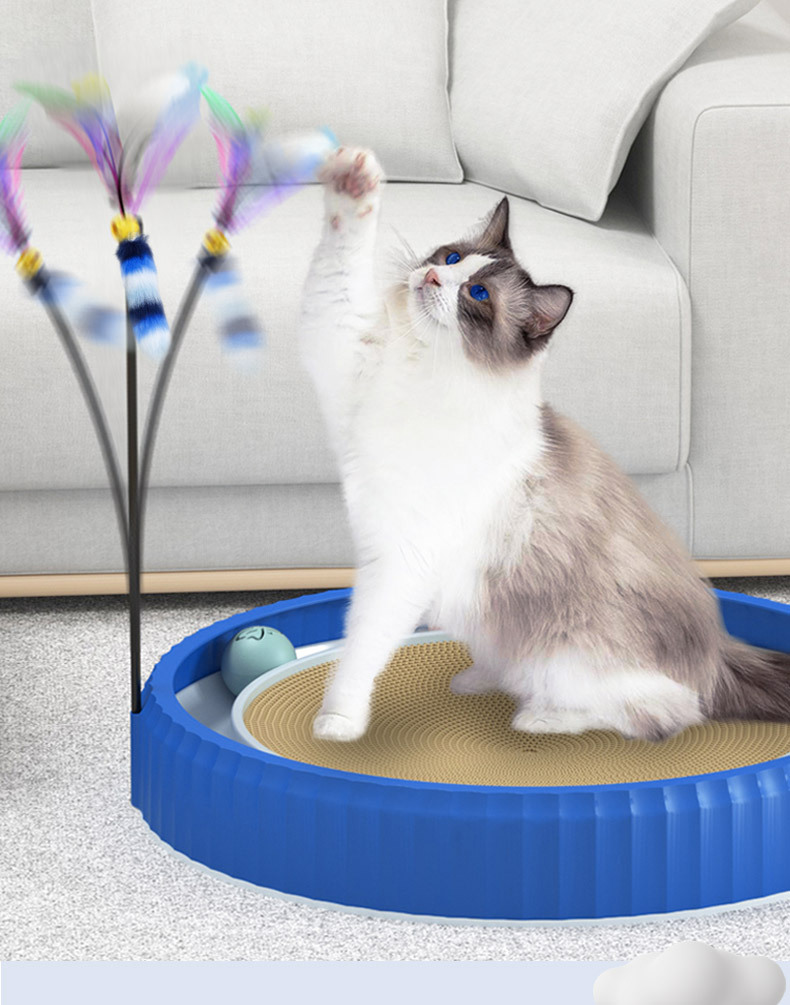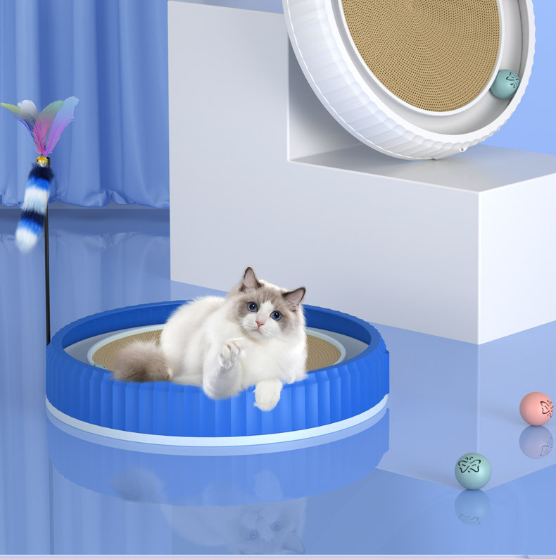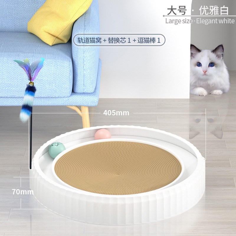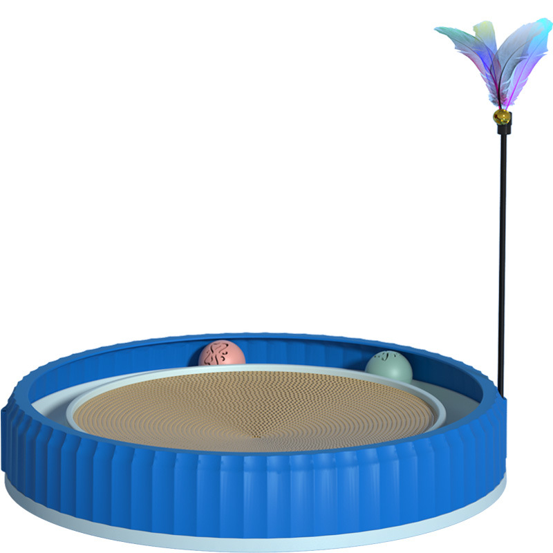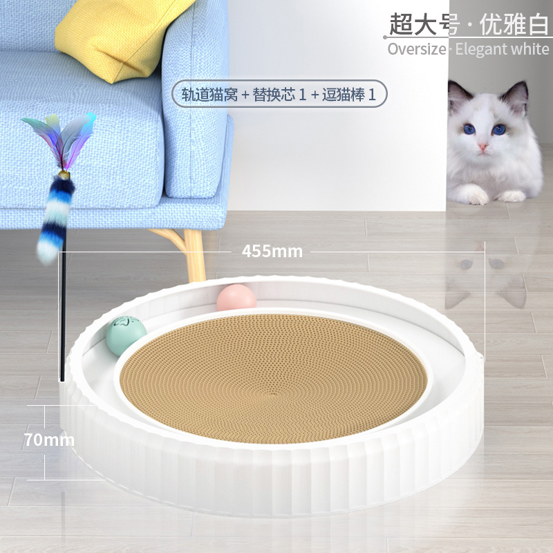 Популярная очень большая лоток-когтеточка для кошек со встроенным мячиком-колокольчиком, оптовая продажа игрушек для кошек из износостойкой гофрированной бумаги