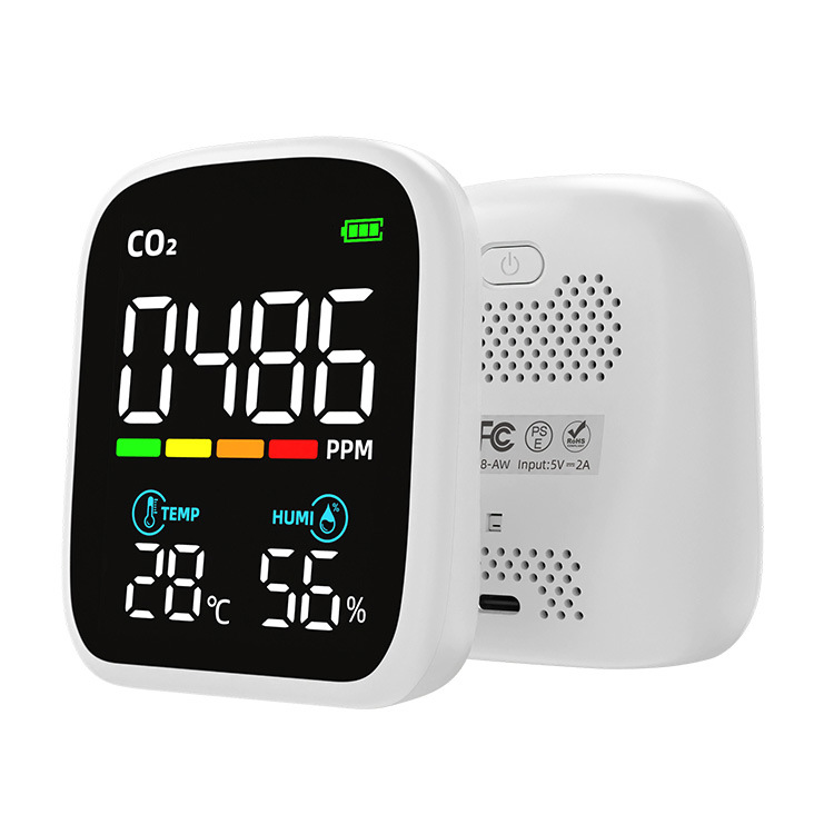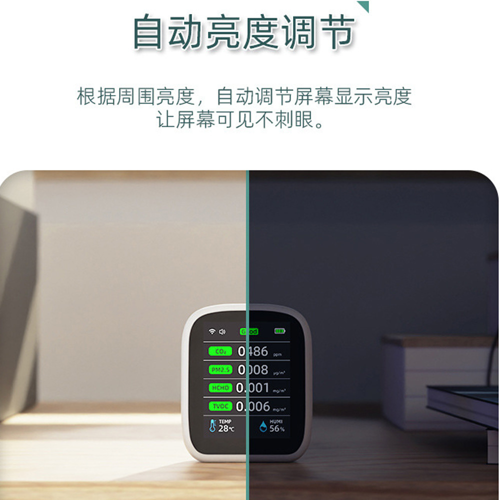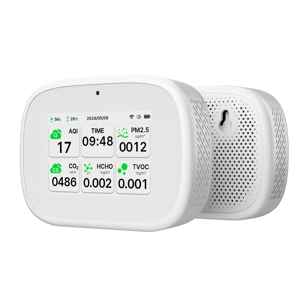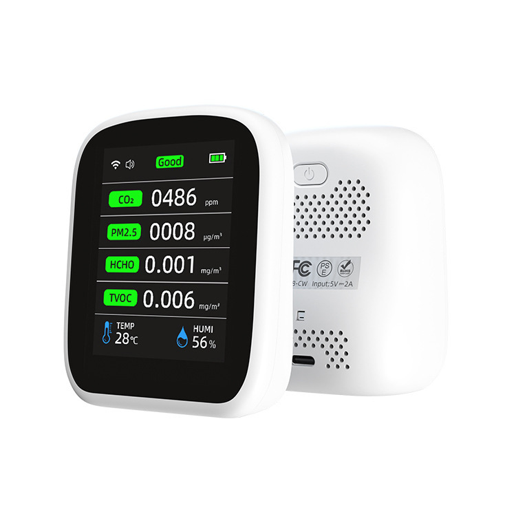 В наличии: детектор углекислого газа PV28, детектор PM2.5, PM1.0, детектор формальдегида, детектор TVOC, детектор температуры и влажности, CO2