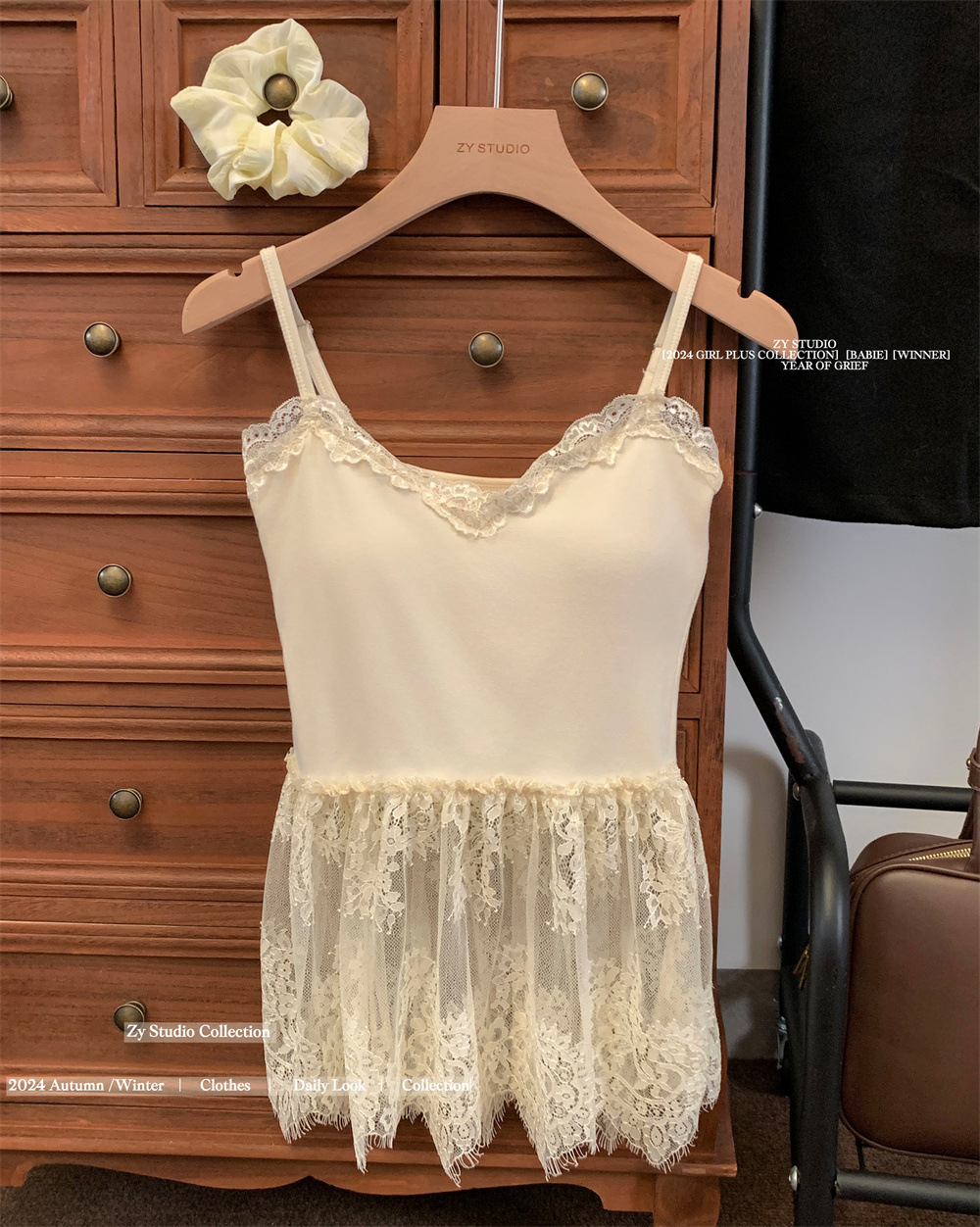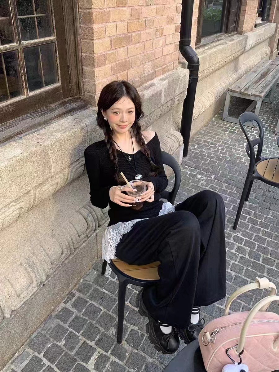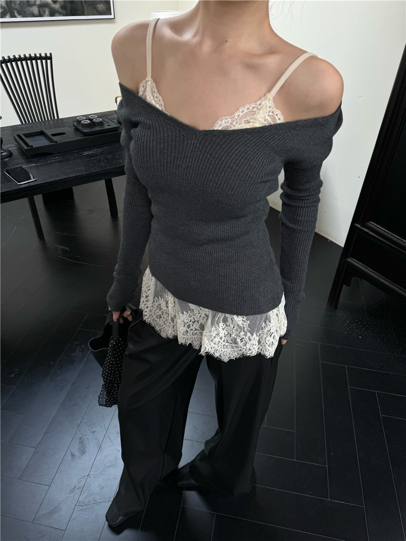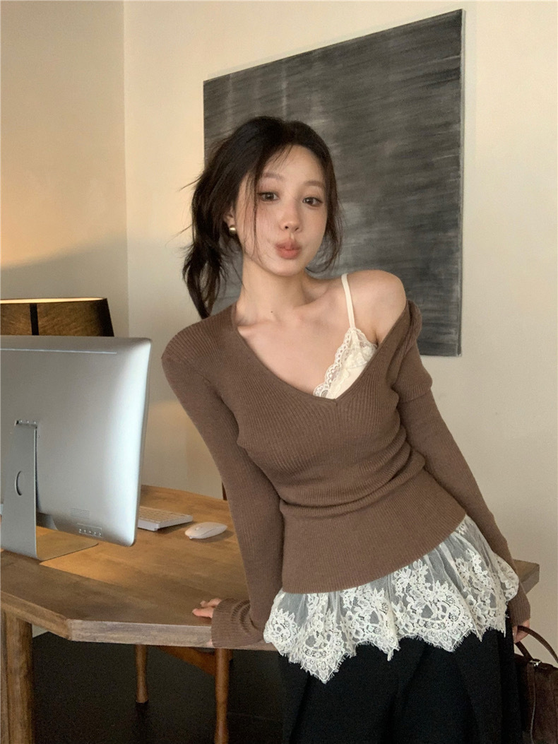 Человеческий хлопок темперамент V-образный стиль, красивая кружевная юбка, маленькая подтяжка, женская атмосфера, наложенная сетчатая пряжа, сшитая пердная занавеска