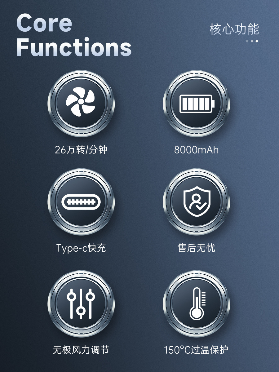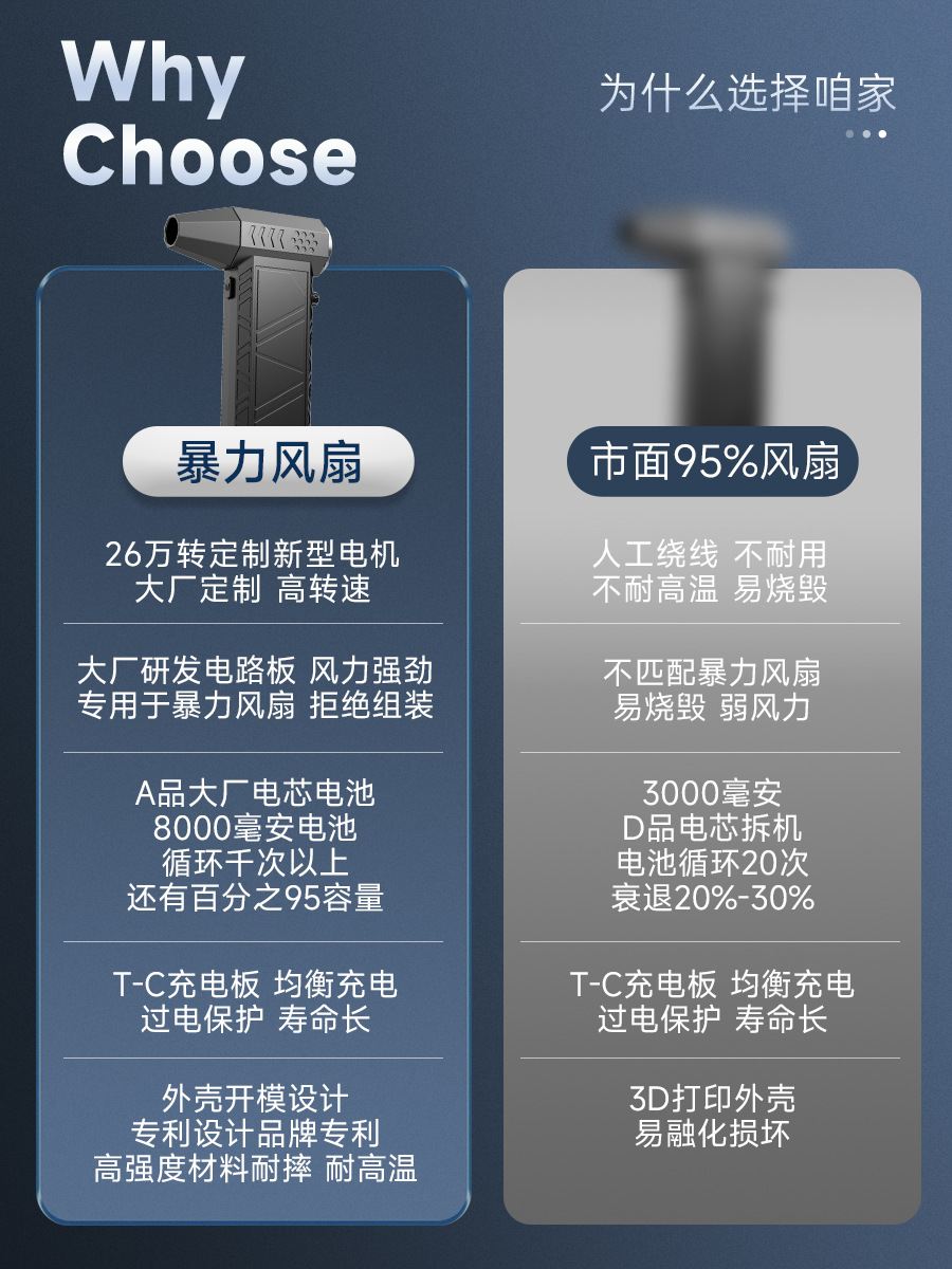 Высокоскоростной турбинный электрический вентилятор, портативный мини-беспроводной пылесос для улицы, незаменимый для кемпинга, мощный вентилятор.