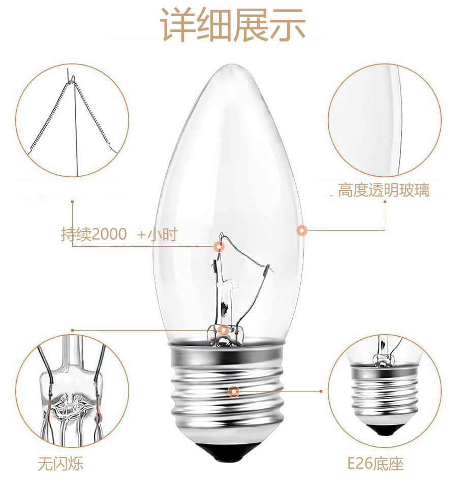 - 2、这里重点说说透明灯泡和磨砂灯泡。由于功率25W以下的灯泡均做成真空灯泡,真空灯泡的灯丝上是有红磷的,红磷是一种吸气剂,当灯泡通电点亮老化的时候,红磷在高温下蒸发,吸引灯内残留的空气水份,提高灯泡真空度,延长灯泡的使用寿命。所以,红磷多,灯泡就越黄,当然寿命也越长。但是,红磷蒸发后会沉淀在泡壳的内表面,呈现出土黄色,所以,透明灯泡不是完全透明无色的。同样,磨砂灯泡,也不是纯白的,而是白里透黄。