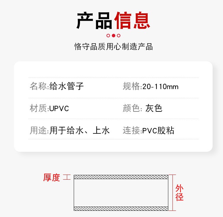 ПВХ труба на водопроводную воду Клея водопроводная труба 20 25 32 40 50 63 75 90 110 серый