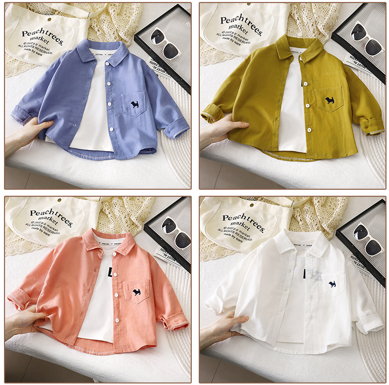 Детские рубашки с длинным рукавом, новые осенние рубашки для мальчиков, топы с отложным воротником из чистого хлопка, детские кардиганы, детские куртки, детская одежда