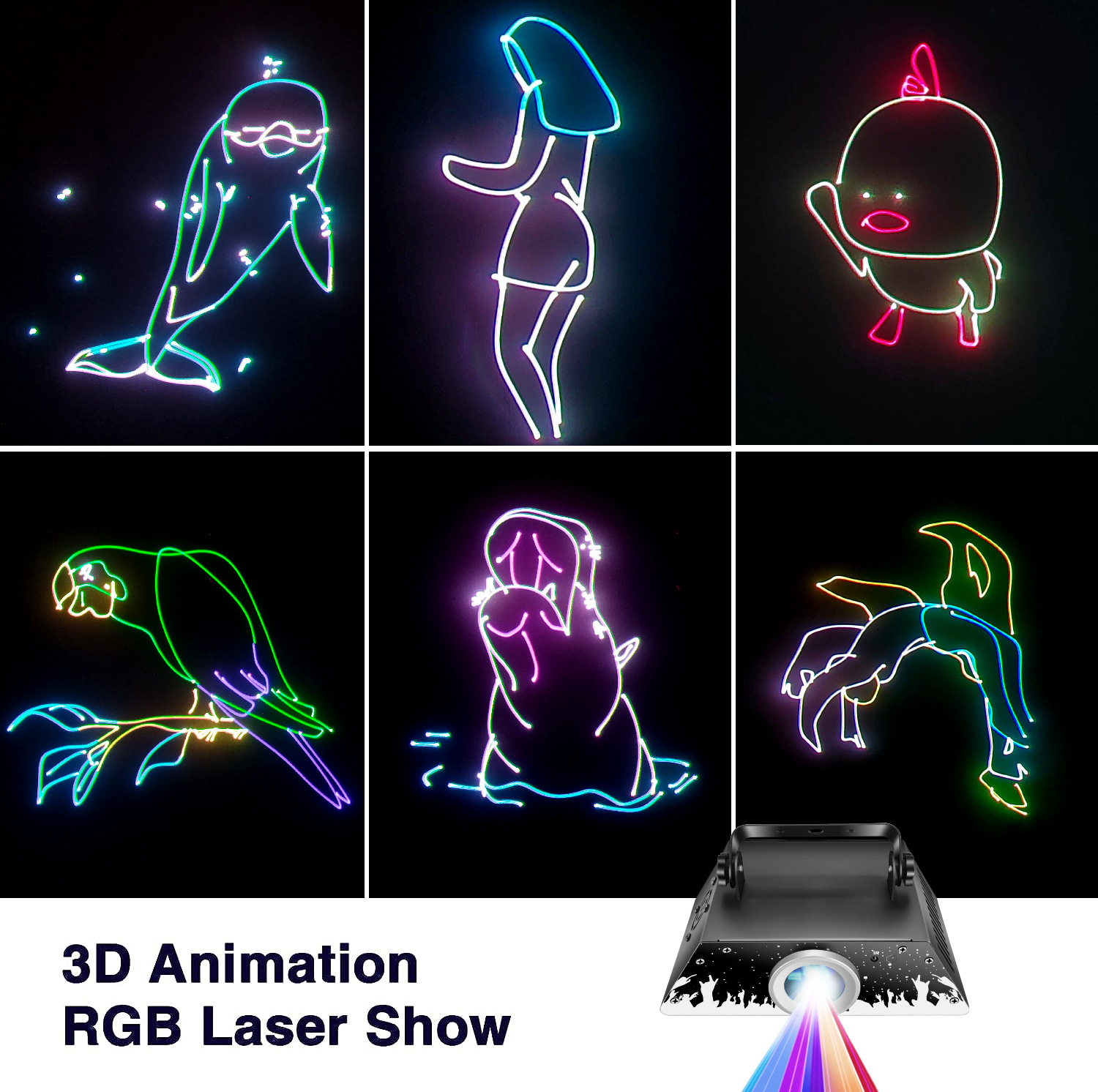 Новый 3D-лазерный проектор с полноцветной анимацией для сцены, караоке-баров, частных комнат, стробоскоп, проекция световых узоров