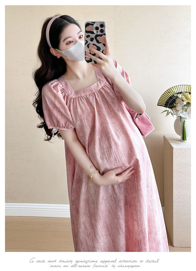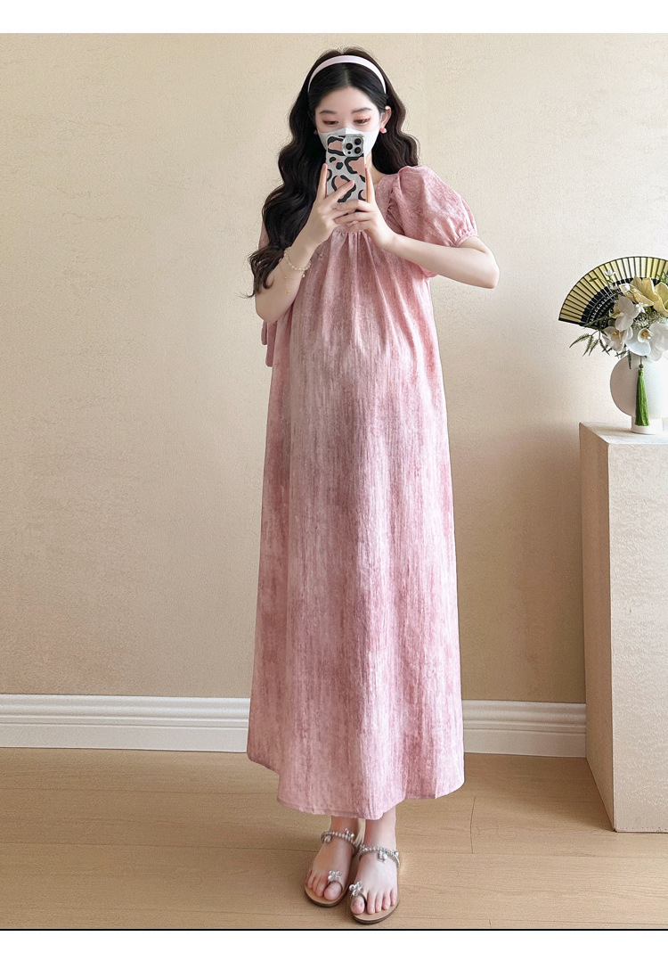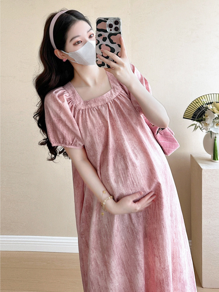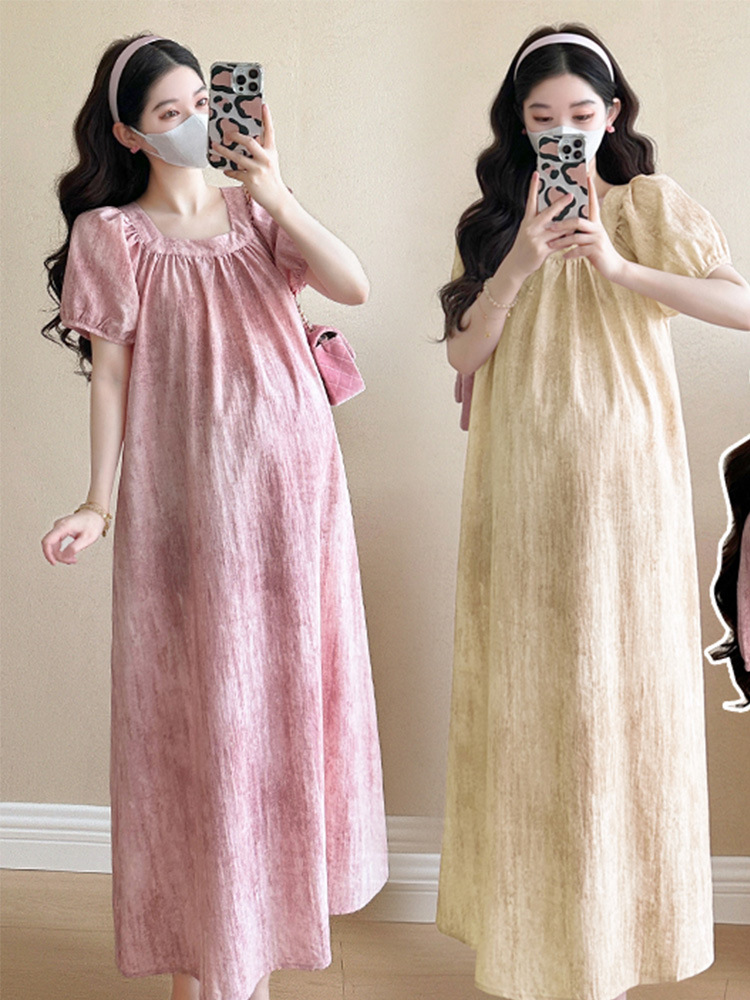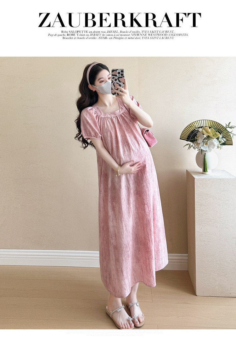 2025 летняя беременная юбка носить модный галстер градиент темперамент высокого уровня тонкое платье с короткими рукавами плюс размер
