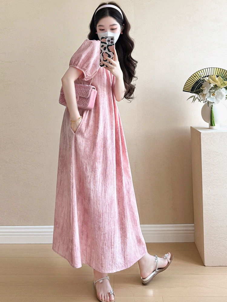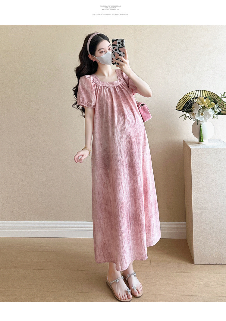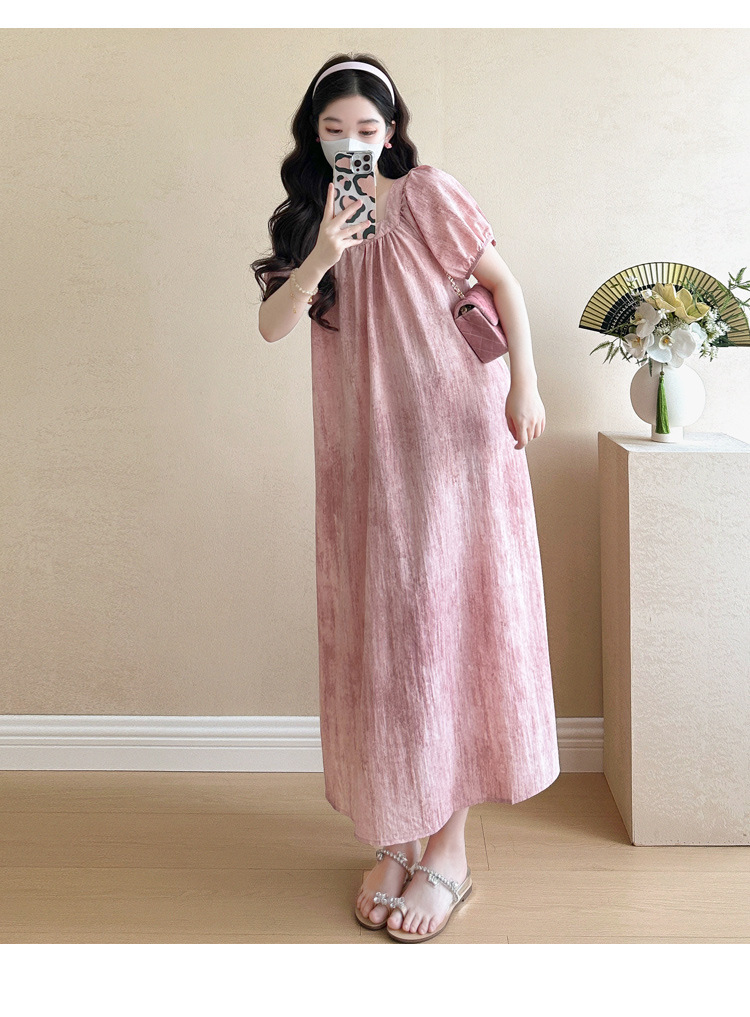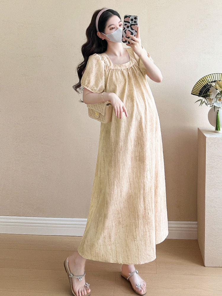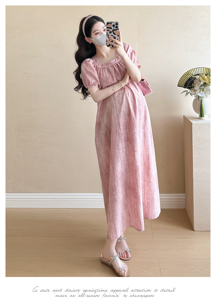 2025 летняя беременная юбка носить модный галстер градиент темперамент высокого уровня тонкое платье с короткими рукавами плюс размер