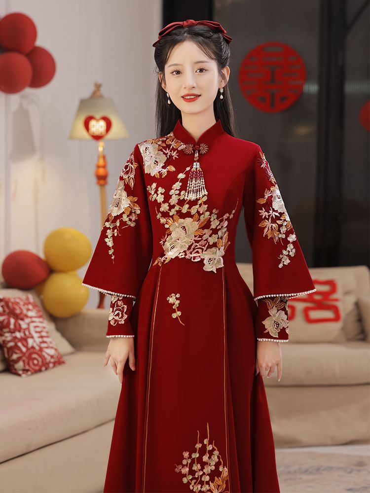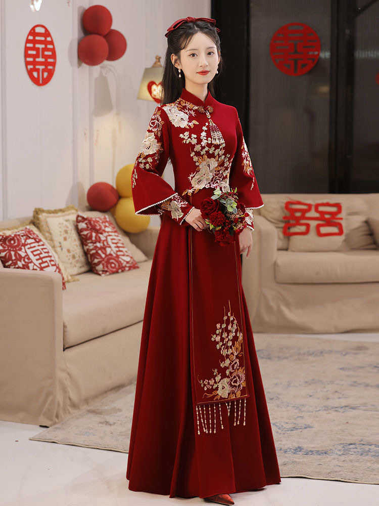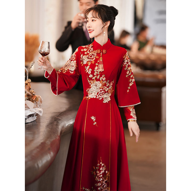 Поджаренный костюм 2024 новый свадебный банкет свадебный китайский стиль обручальное платье улучшенный чонсам