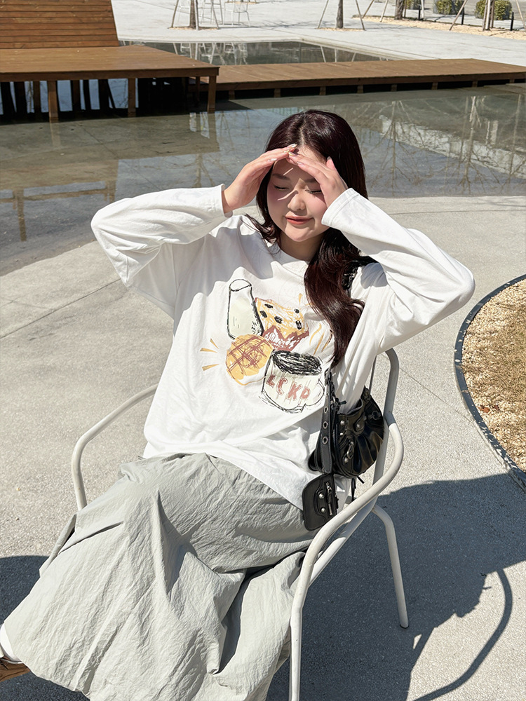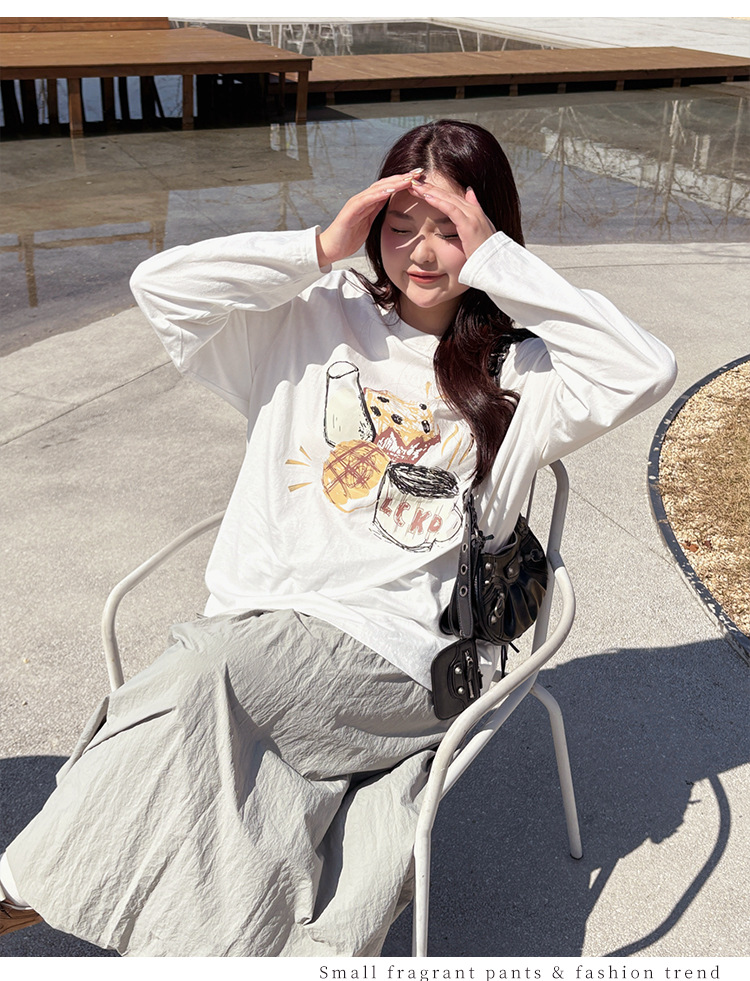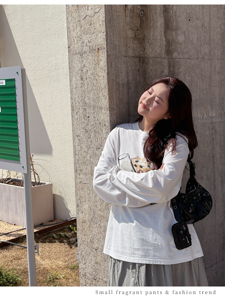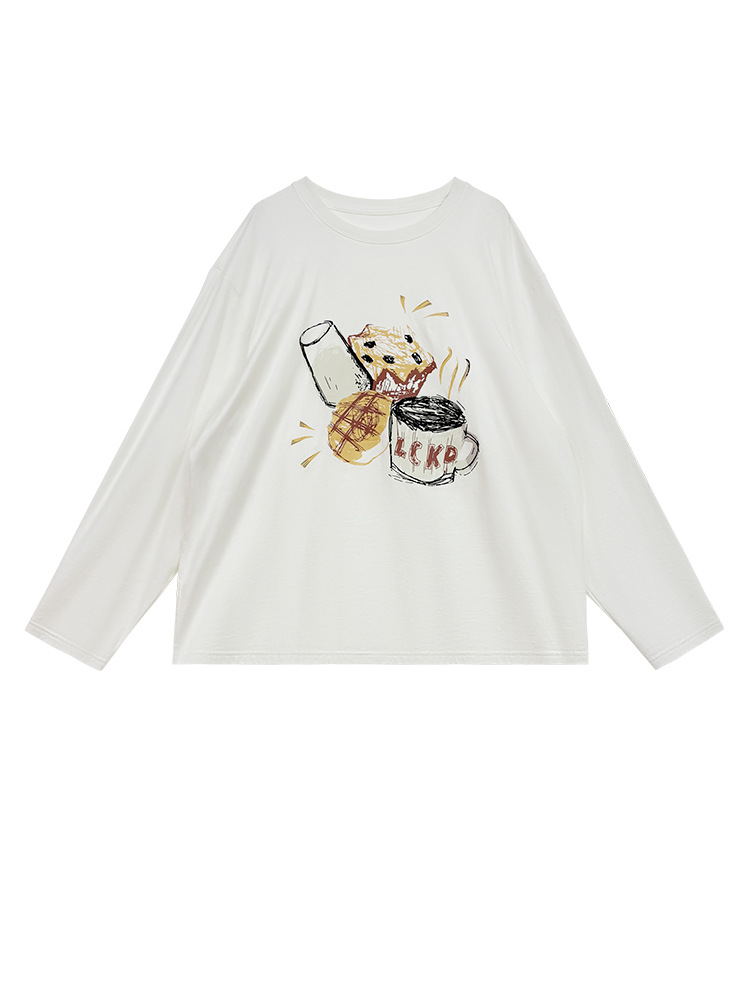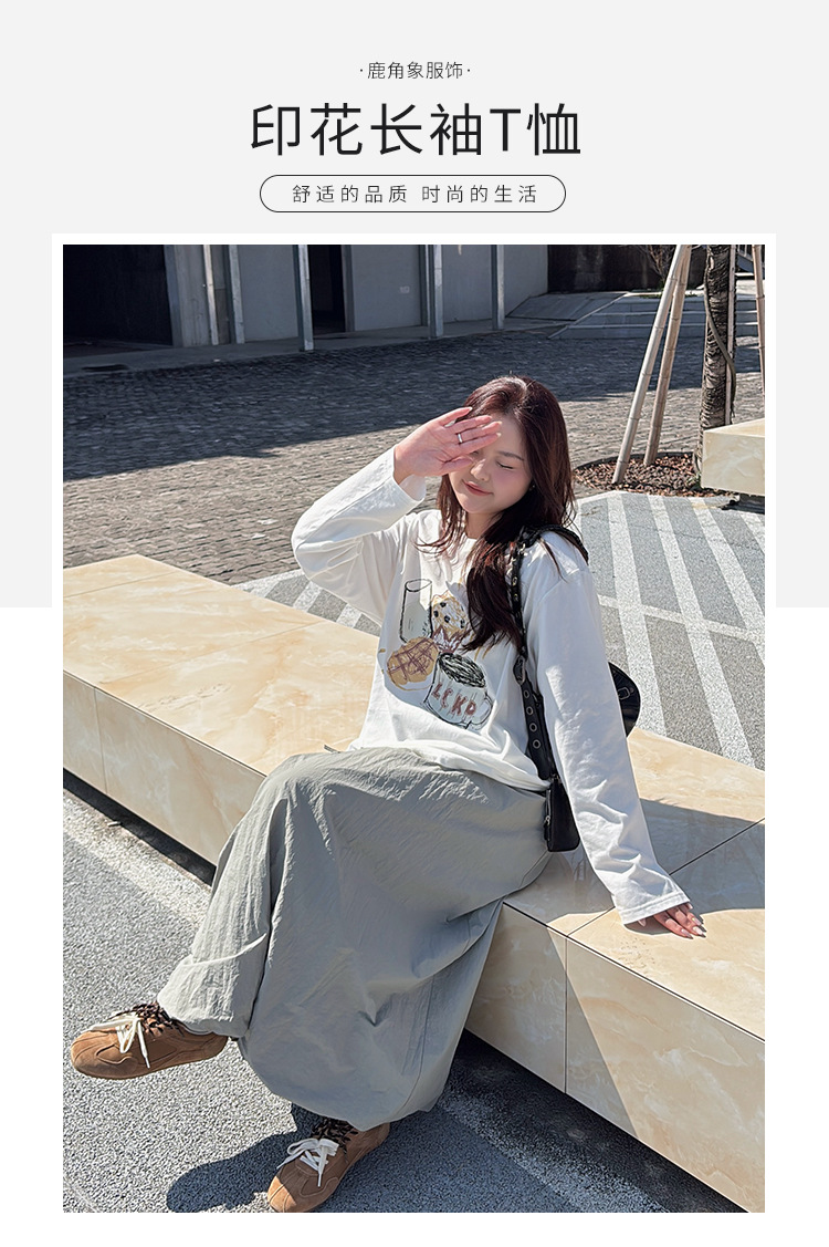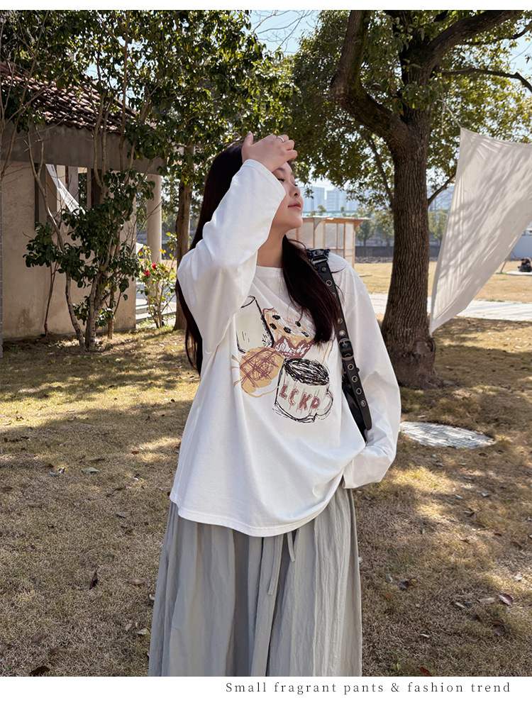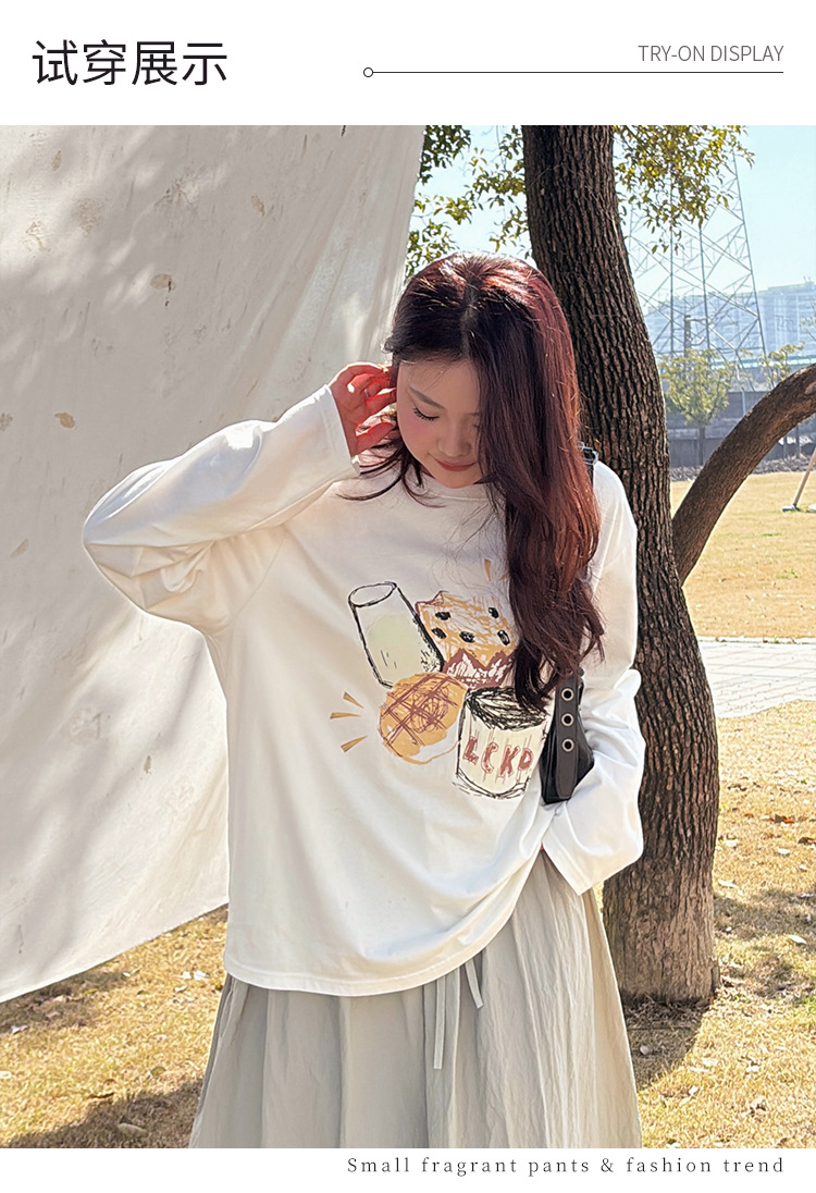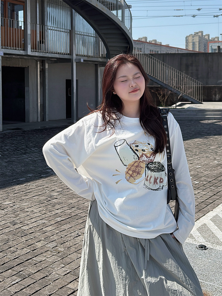 Большой размер женщины американский ленивый ветер с круглым вырезом свободная хлопковая футболка с длинными рукавами рубашка с принтом chic белый топ