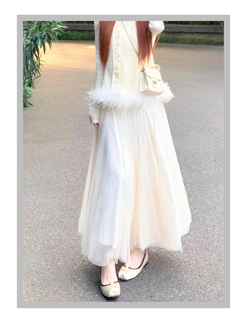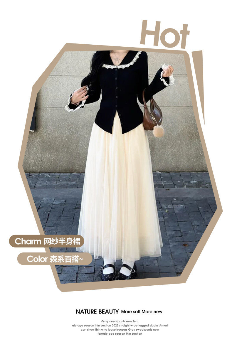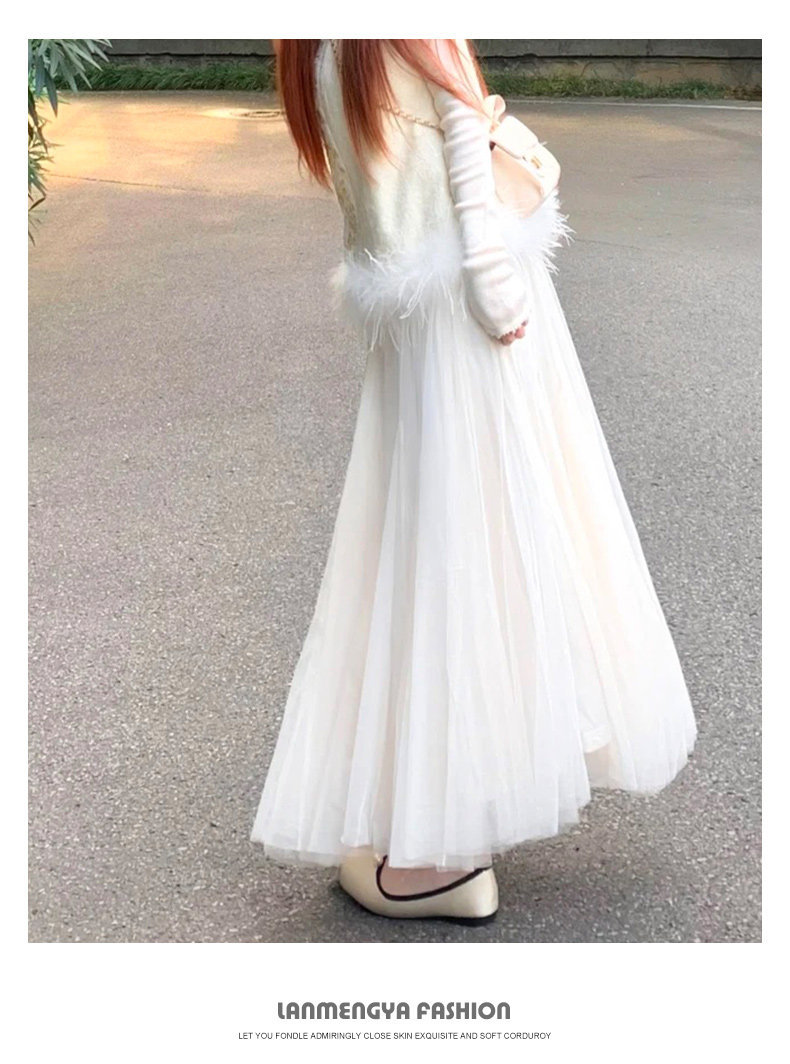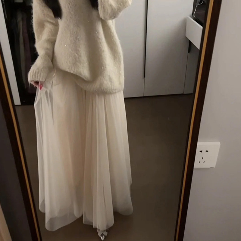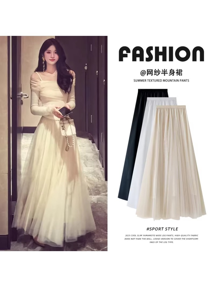 Женская абрикосовая юбка из сетки Off-white, новинка весна-лето 2026, длинная юбка А-силуэта с высокой талией, струящаяся и объемная.