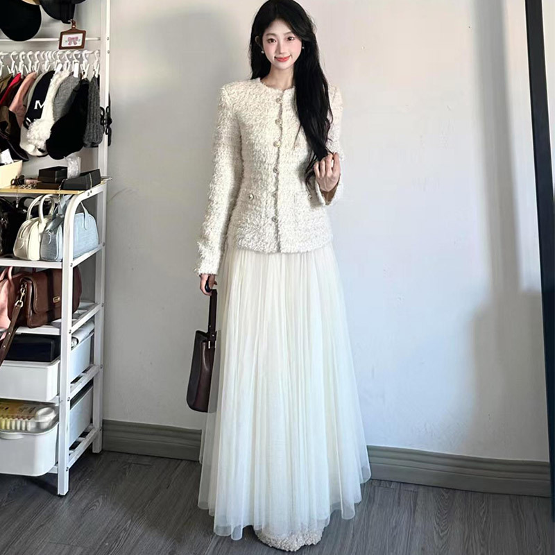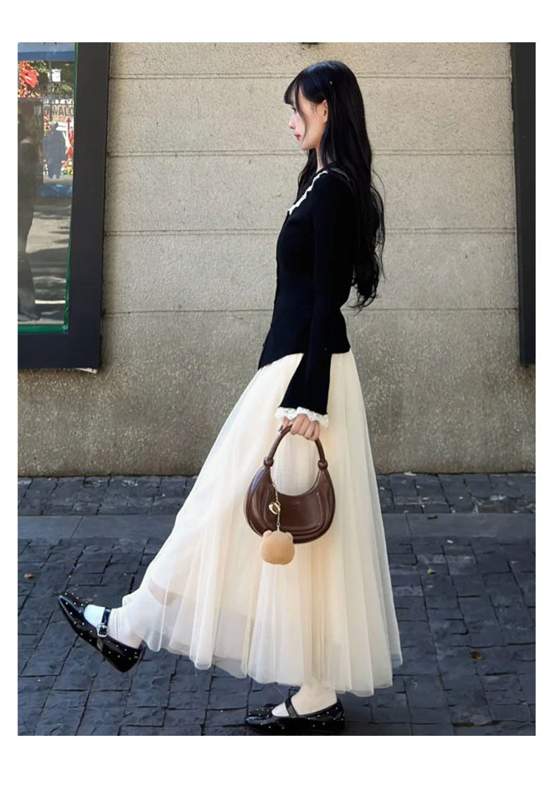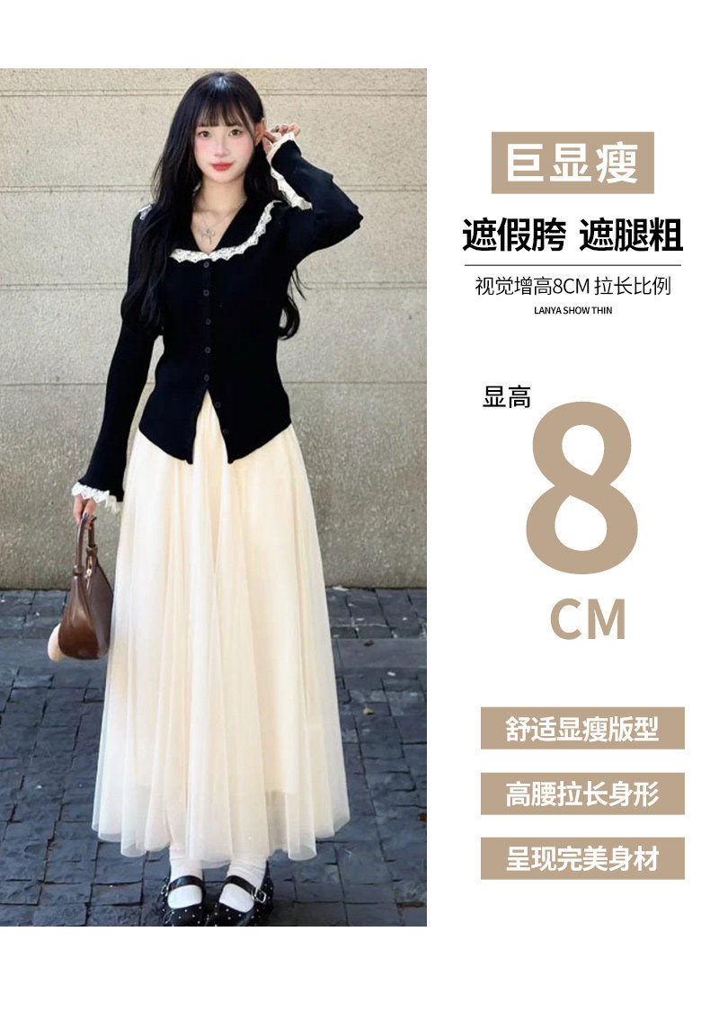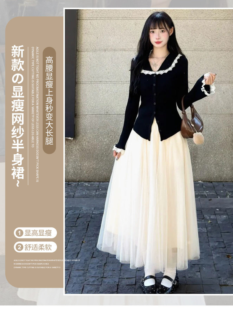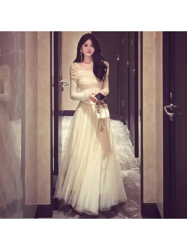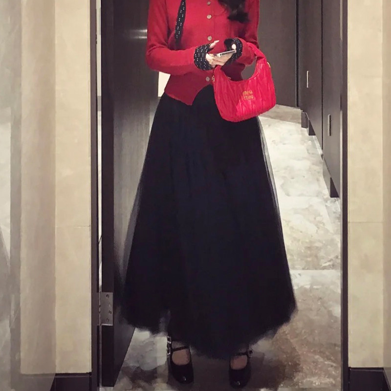 Женская абрикосовая юбка из сетки Off-white, новинка весна-лето 2026, длинная юбка А-силуэта с высокой талией, струящаяся и объемная.
