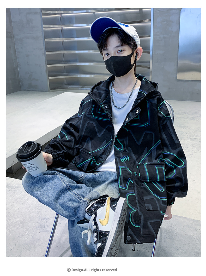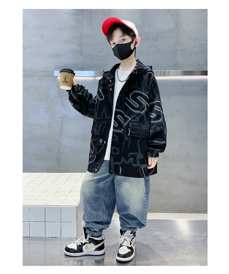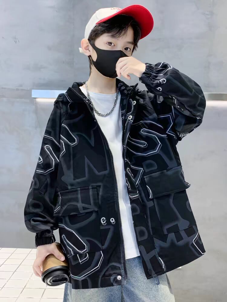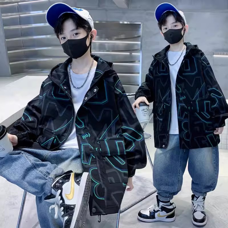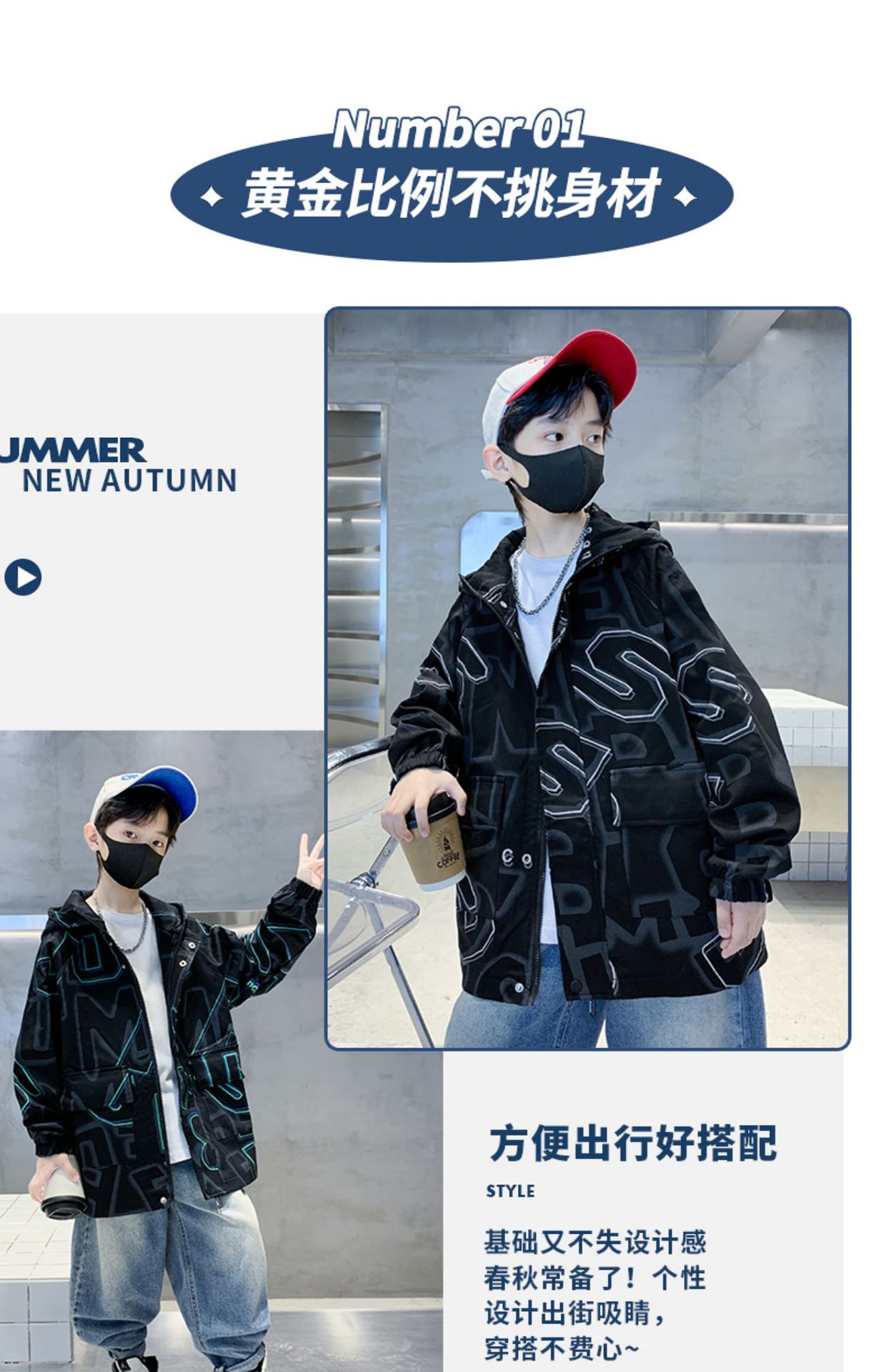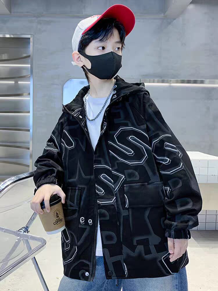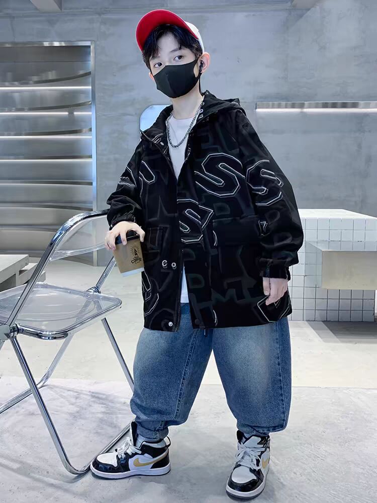 Мальчик весной и осенью 2025 наружная куртка ветрозащитная водонепроницаемая ветровка классная ветровка повседневная буква куртка