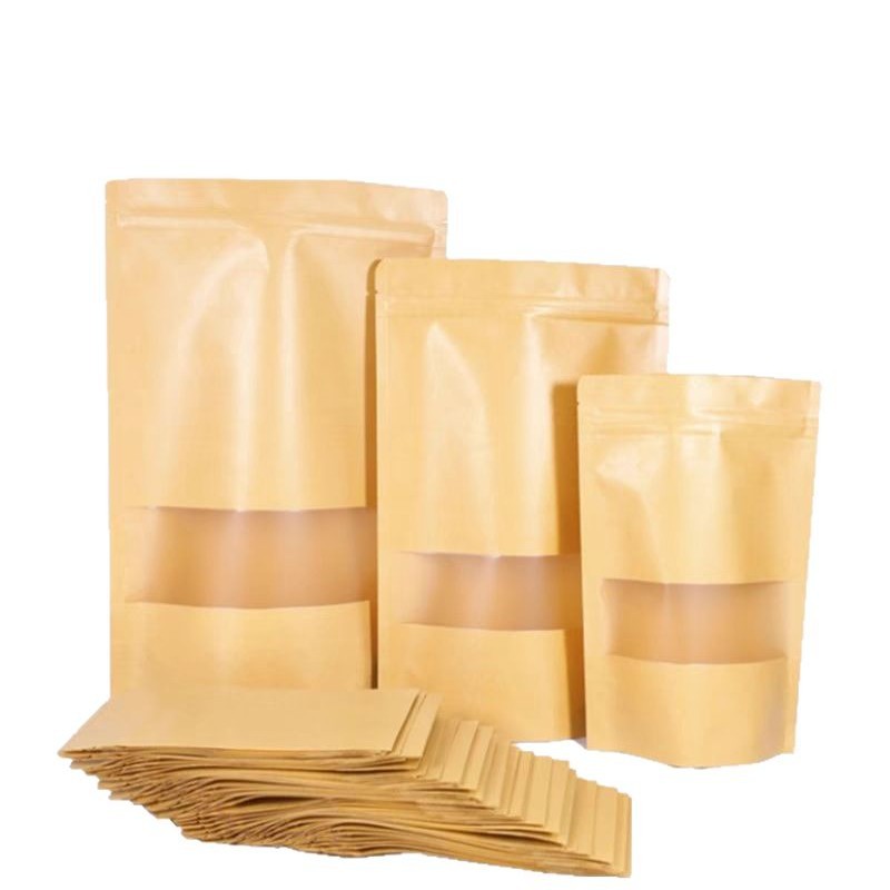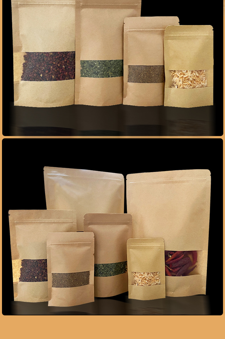 Открывающий окно крафт-бумажный пакет для упаковки сухофруктов для упаковки пищевых продуктов матовая крафт-бумага самозапечатывающаяся сумка