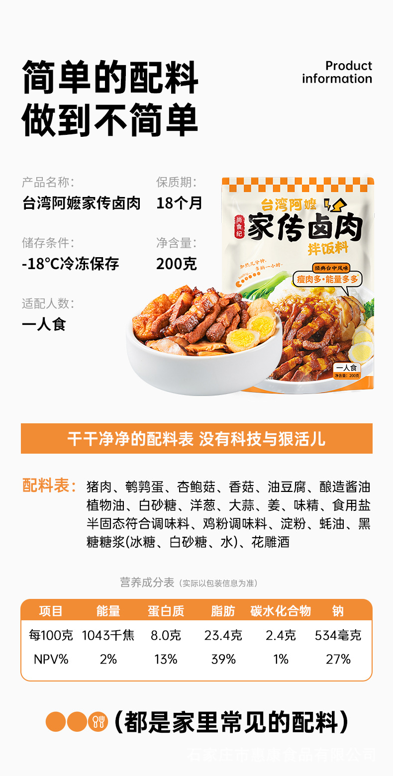 Гуй Ян Шанши Цзи Кулинария Тайваньская свиная тушеная по-семейному 200г Готовое блюдо Удобная полуфабрикат оптом.
