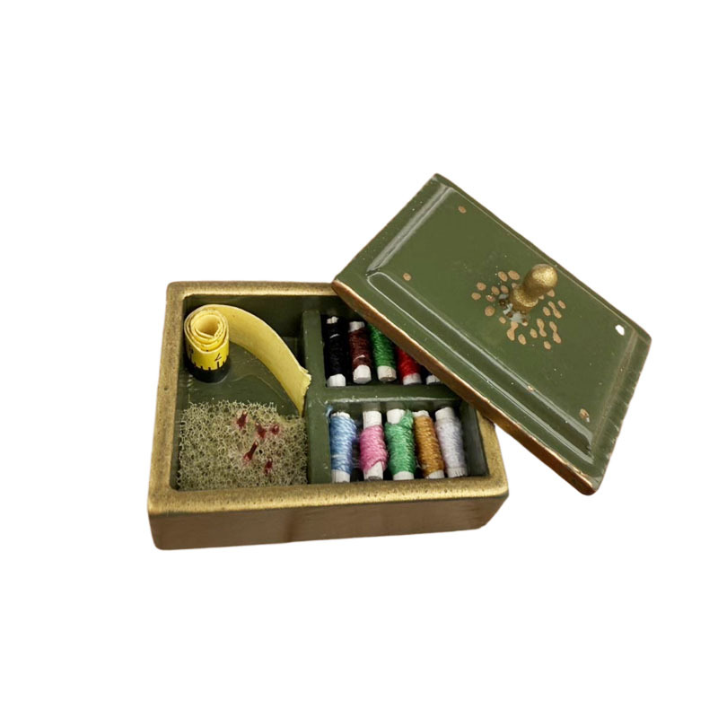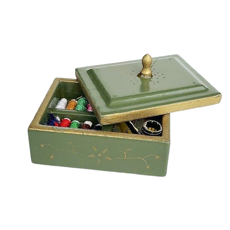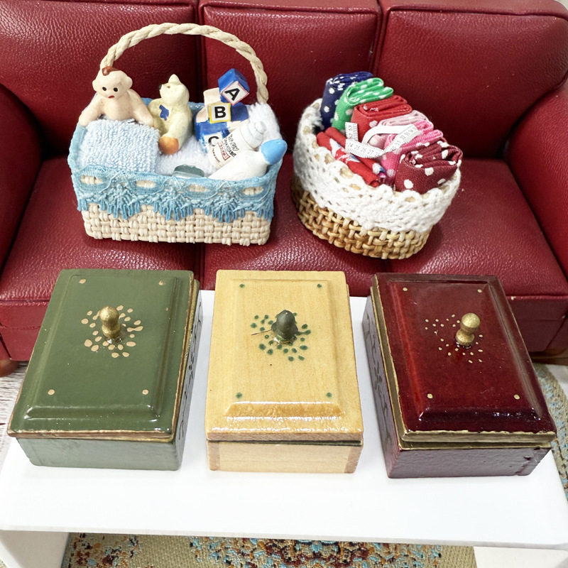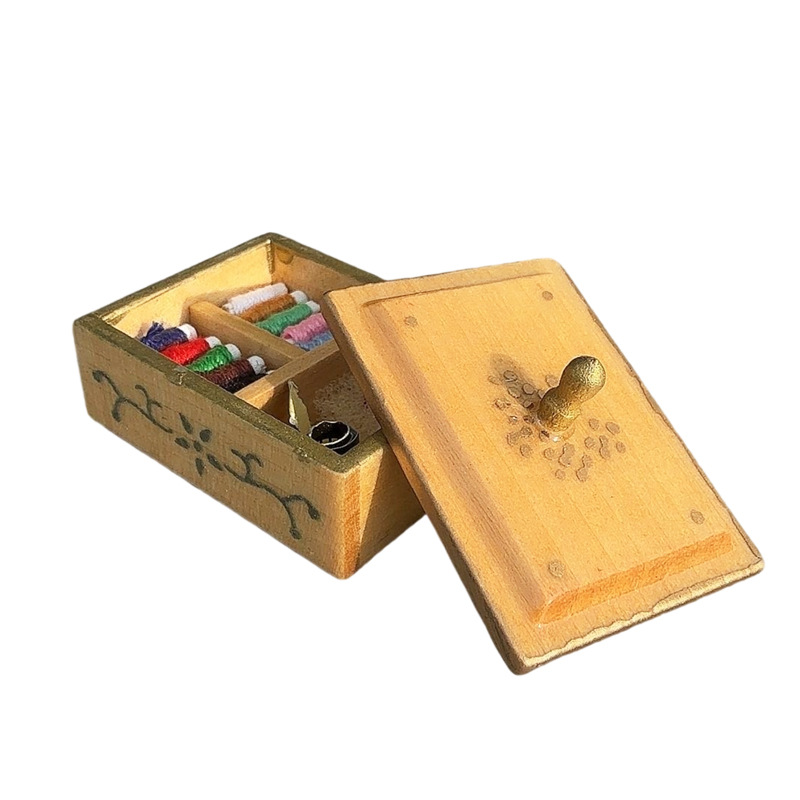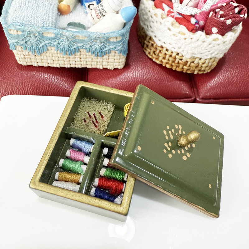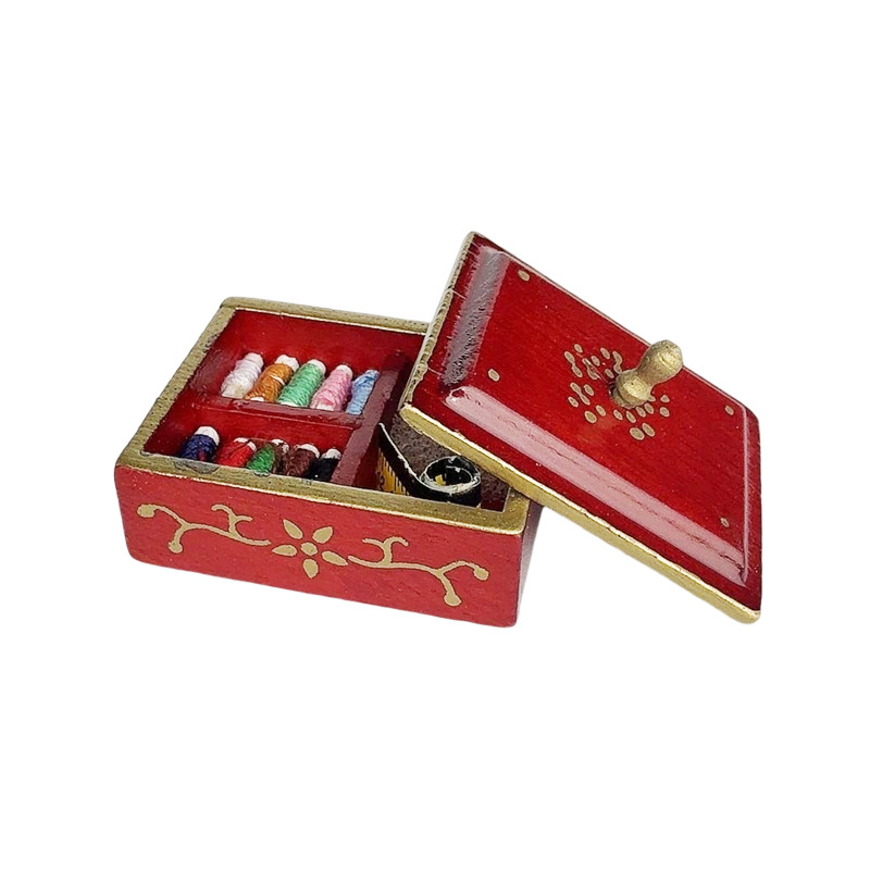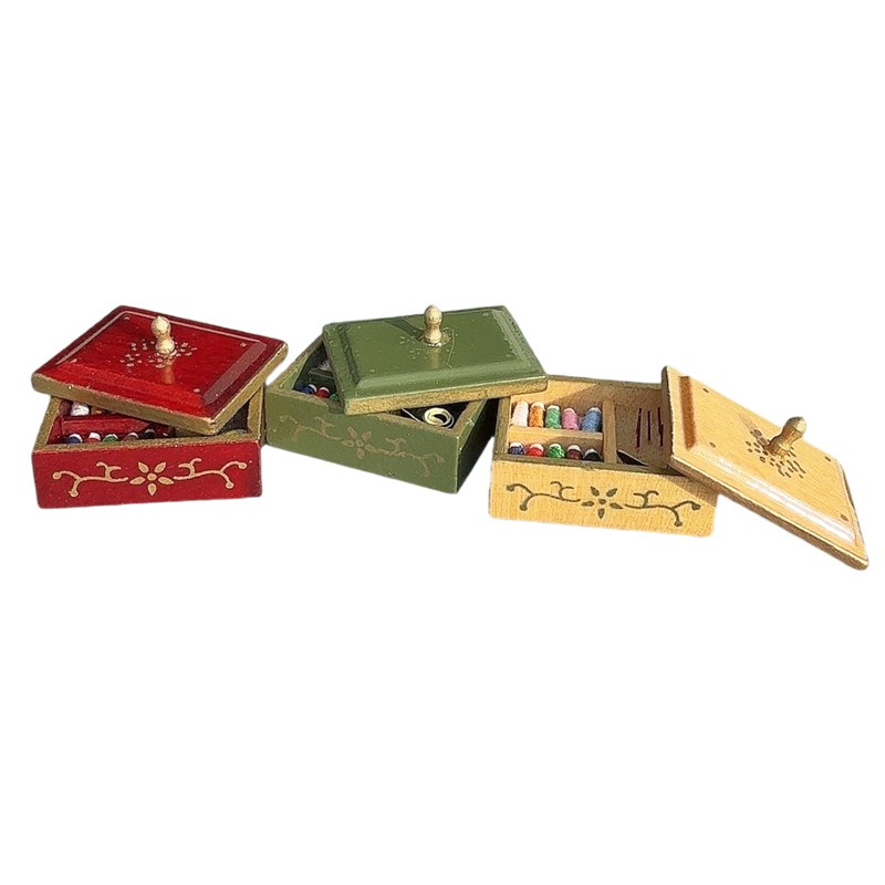 迷你缝纫场景配件,针线盒模型带盖。盒子上的花纹是手工描花。花纹颜色随机。