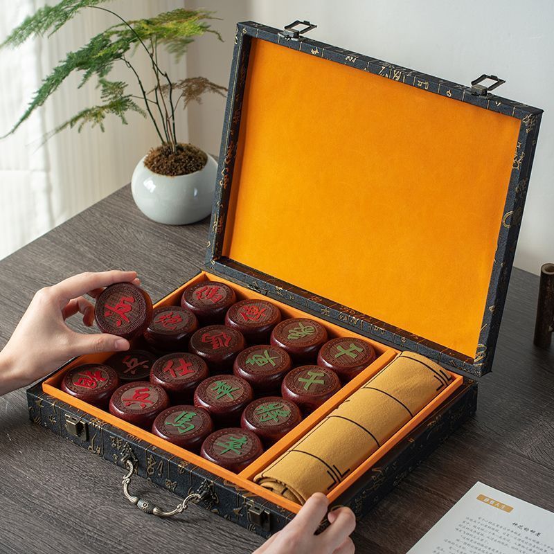 Высококлассные шахматы большие китайские шахматы из цельного дерева кожаная шахматная доска для детей, взрослые подарки, старшие студенты, красное дерево