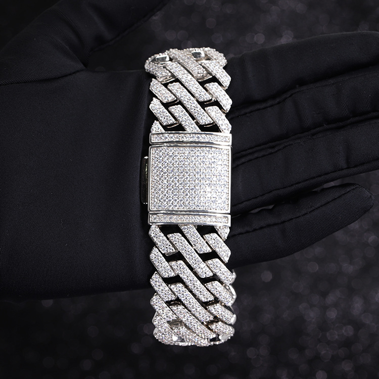 Европейский и американский хип-хоп ромб муассанит инкрустированный серебряный браслет