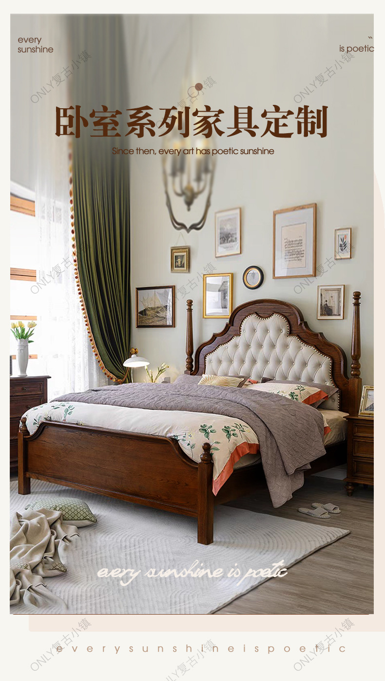 Американская ретро кровать из массива дерева Французская кровать принцессы тумбочка комод Комод для спальни полный набор высококачественной мебели