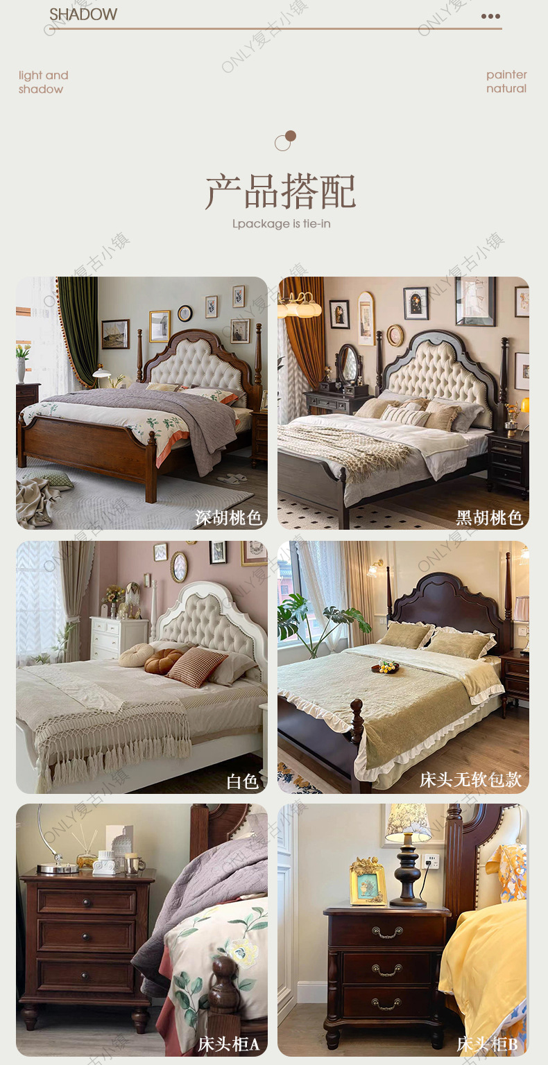 Кровать из массива 1.5m (цвет темный орех); Кровать из массива 1.8m (цвет темный орех); Кровать из массива 1.5m (цвет черный орех); Кровать из массива 1.8m (цвет черный орех); Кровать из массива дерева 1.5m (белая); Кровать из массива дерева 1.8m (белая); Кровать из массива 1.5m (цвет черный орех без мягкой обивки); Кровать из массива 1.8m (цвет черный орех без мягкой обивки); Тумбочка А (55*45*65); Прикроватная тумбочка Б; комод с четырьмя ящиками; комод с шестью ящиками; комод с семью ящиками; комод; комод с девятью ящиками; Туалетный столик + туалетный табурет; Модернизированный матрас 1.5m; Модернизированный матрас 1.8m; Матрас Comfort Edition 1.5m; Матрас Comfort Edition 1.8m; Настроить другие цвета/размеры