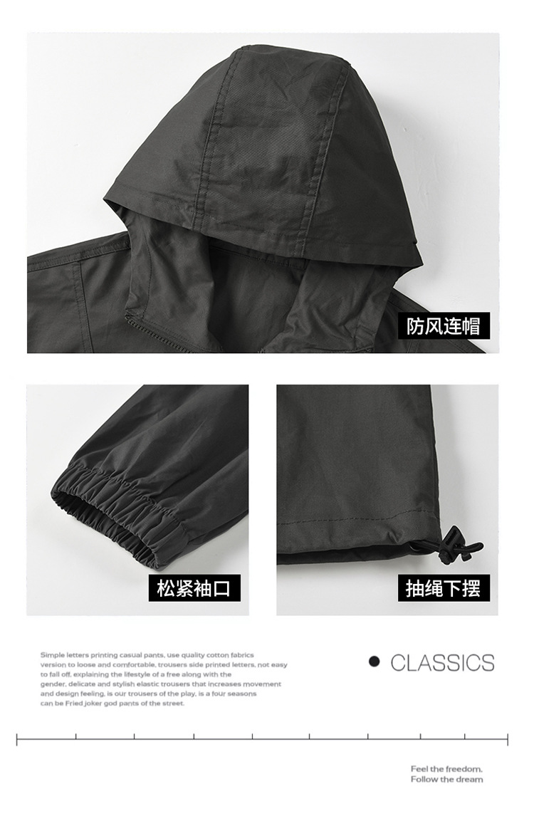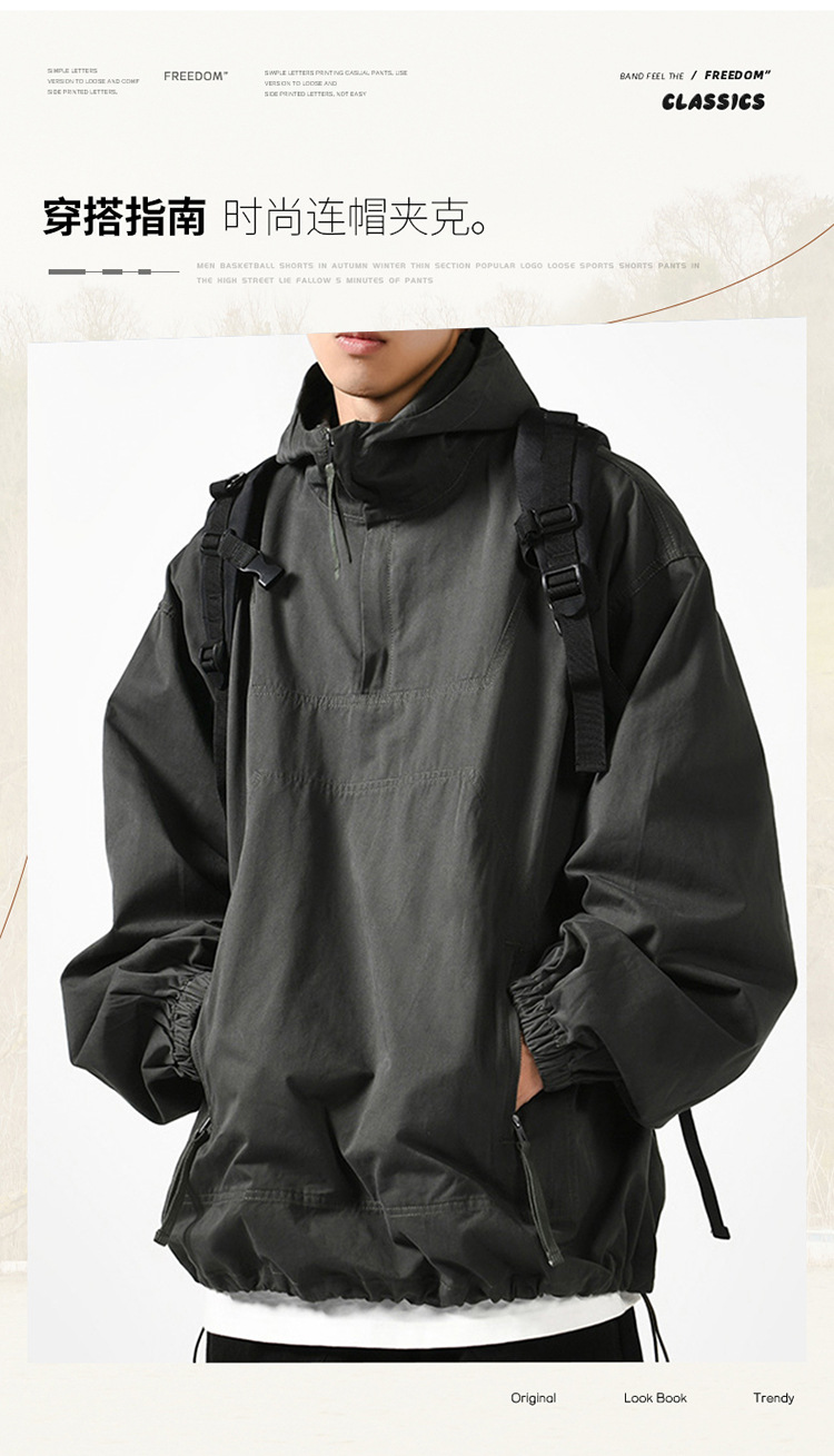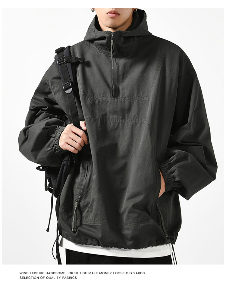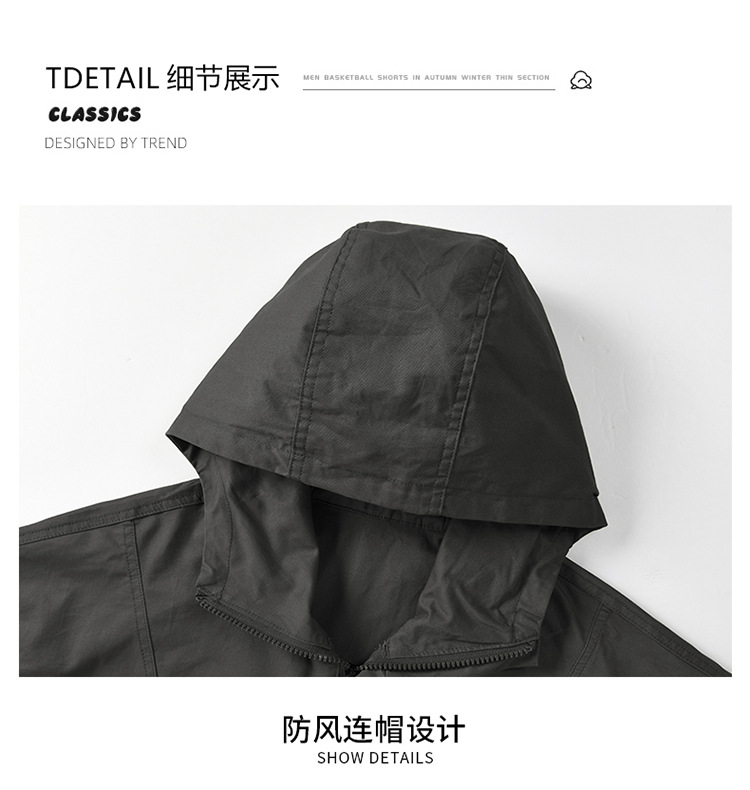 Куртка мужская весна и осень с капюшоном хлопчатобумажная куртка куртка одежда свободная тонкая сплошная тенденция